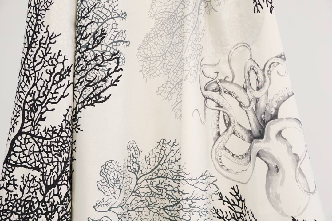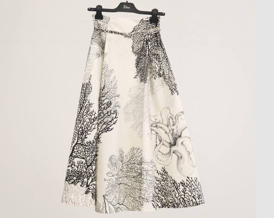 Юбка Christian Dior LUX-86300 — изысканная юбка с уникальным принтом, сочетающая в себе элегантность и современный стиль. Белый фон украшен черным рисунком кораллов и осьминога, что придает изделию оригинальность и неповторимость. Юбка подойдет для создания как повседневных, так и более формальных образов.