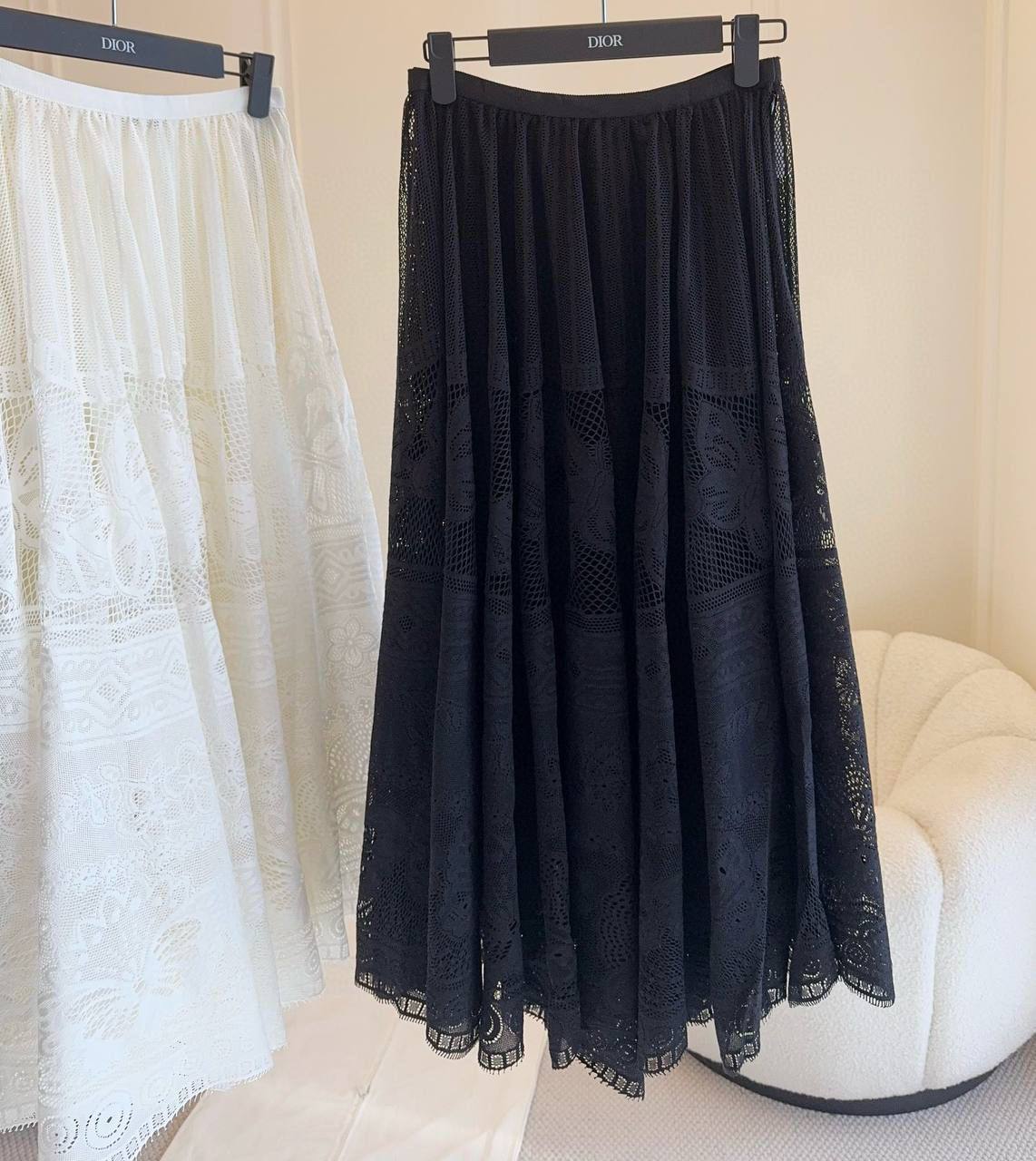 Юбка Christian Dior LUX-100525 представляет собой изысканный предмет гардероба. Чёрный цвет и кружевная текстура придают юбке элегантный и женственный вид. Этот предмет одежды идеально подойдёт для создания как повседневных, так и более формальных образов.