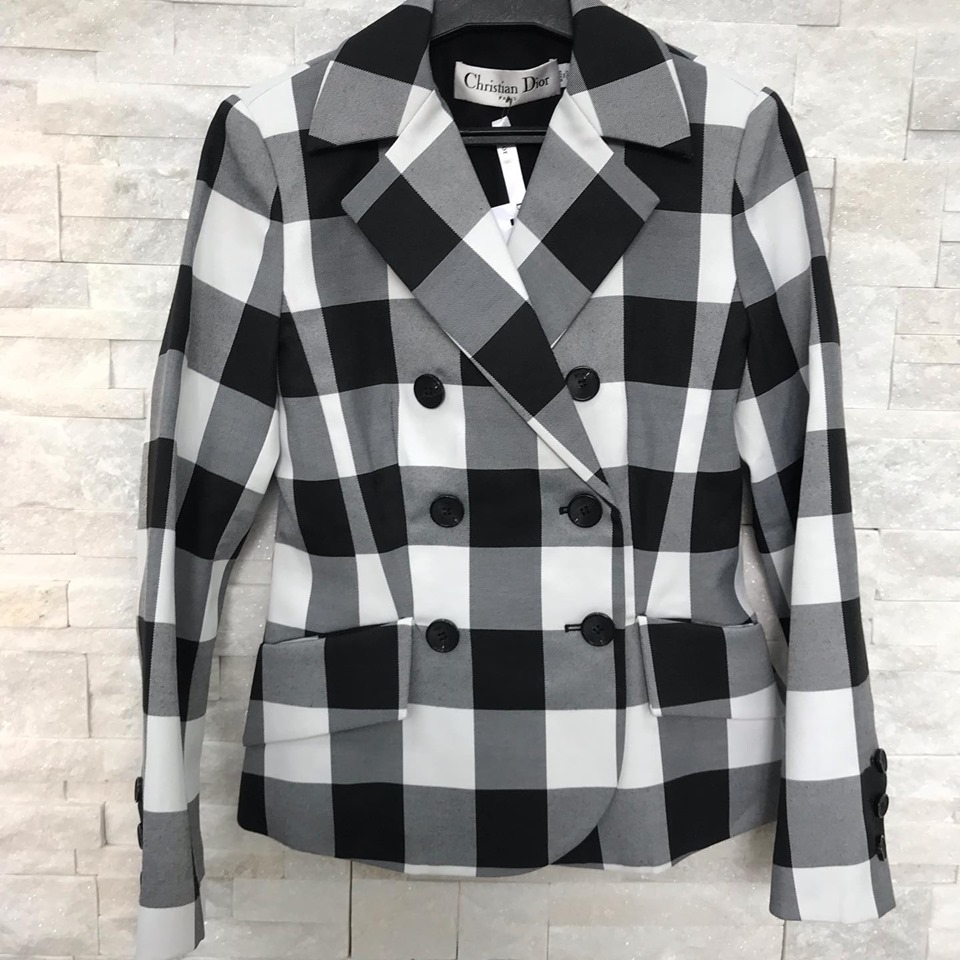 Элегантный двубортный жакет Christian Dior LUX-17411 выполнен в узнаваемом стиле бренда, сочетающем классику и современность. Его яркий черно-белый клетчатый принт придает образу динамичность и графичность. Этот жакет станет эффектным дополнением как к деловому, так и к повседневному гардеробу, подчеркивая изысканный вкус обладательницы.