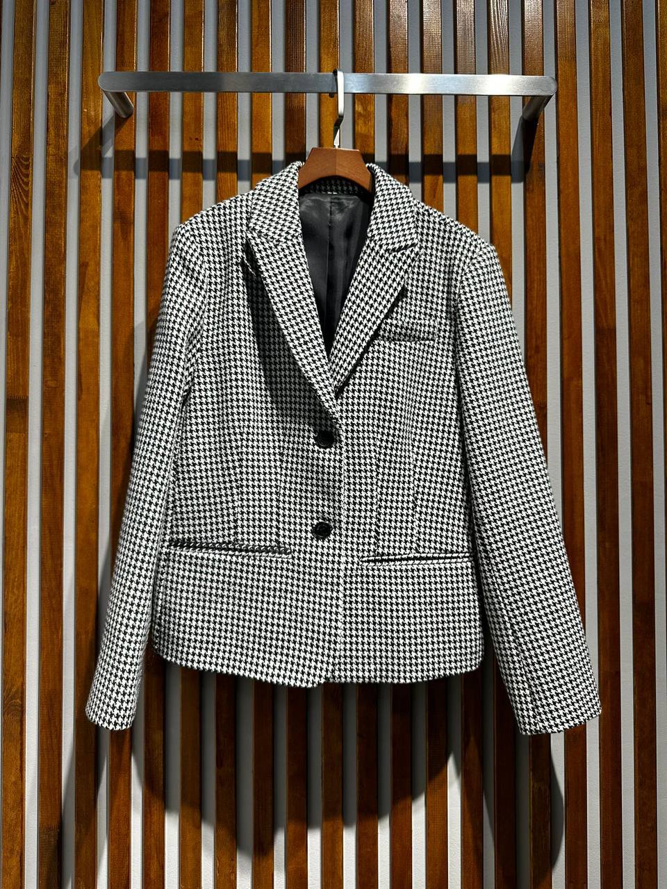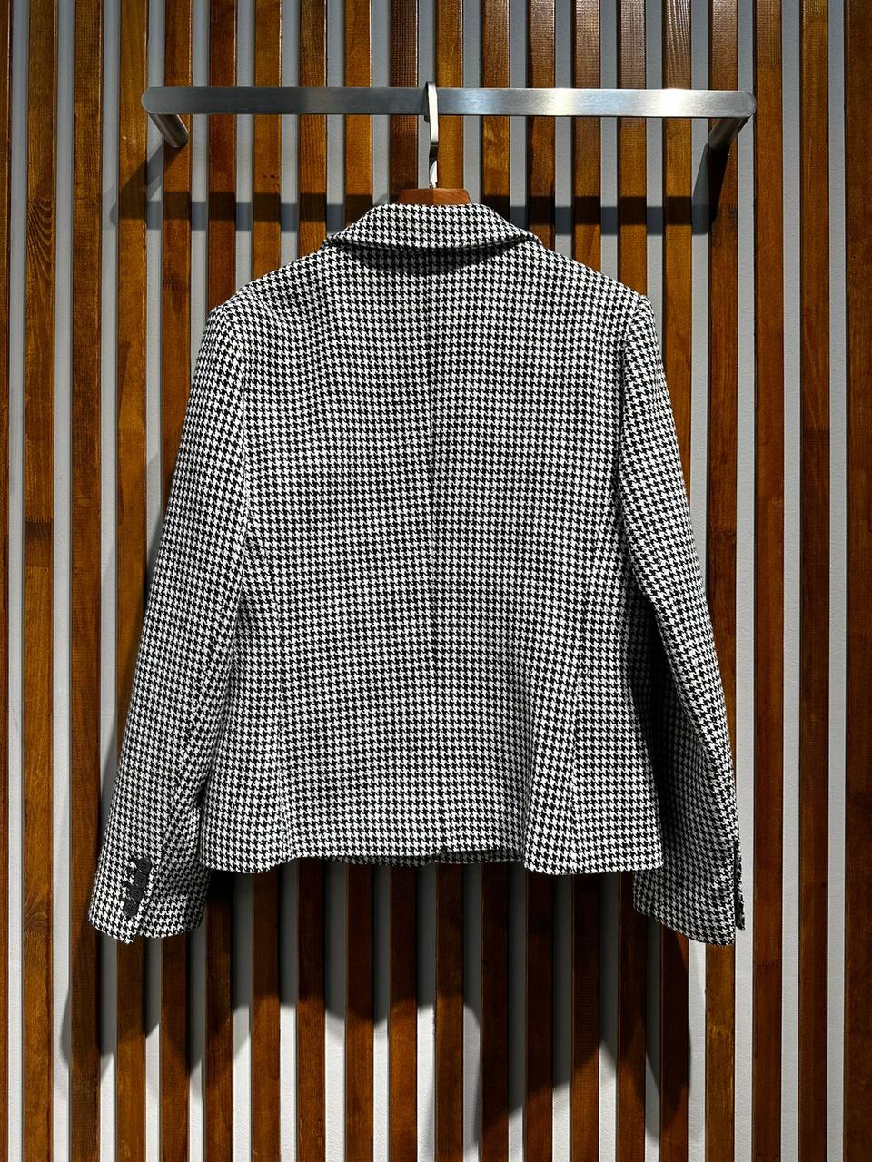 Жакет Christian Dior LUX-95248 – это стильный предмет гардероба, выполненный в классическом стиле. Жакет имеет черно-белый принт «гусиная лапка» и двубортный крой с элегантным воротником. Он идеально подойдет для создания как повседневных, так и более формальных образов.