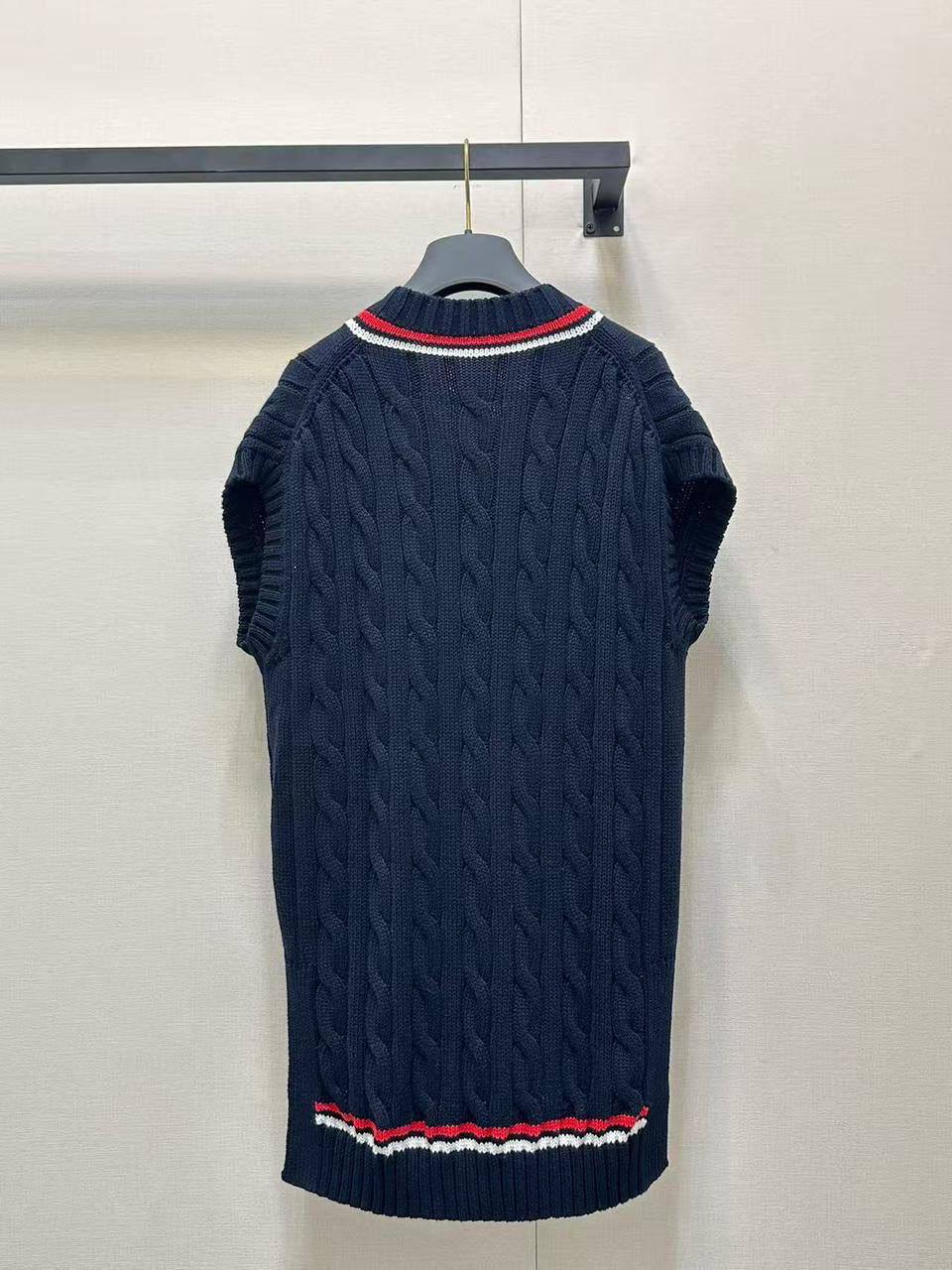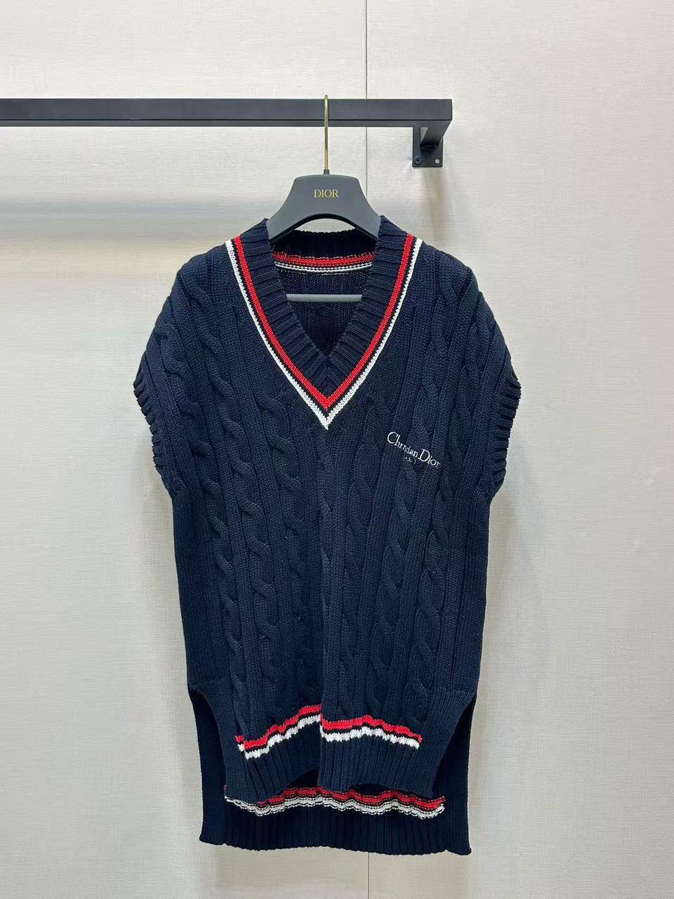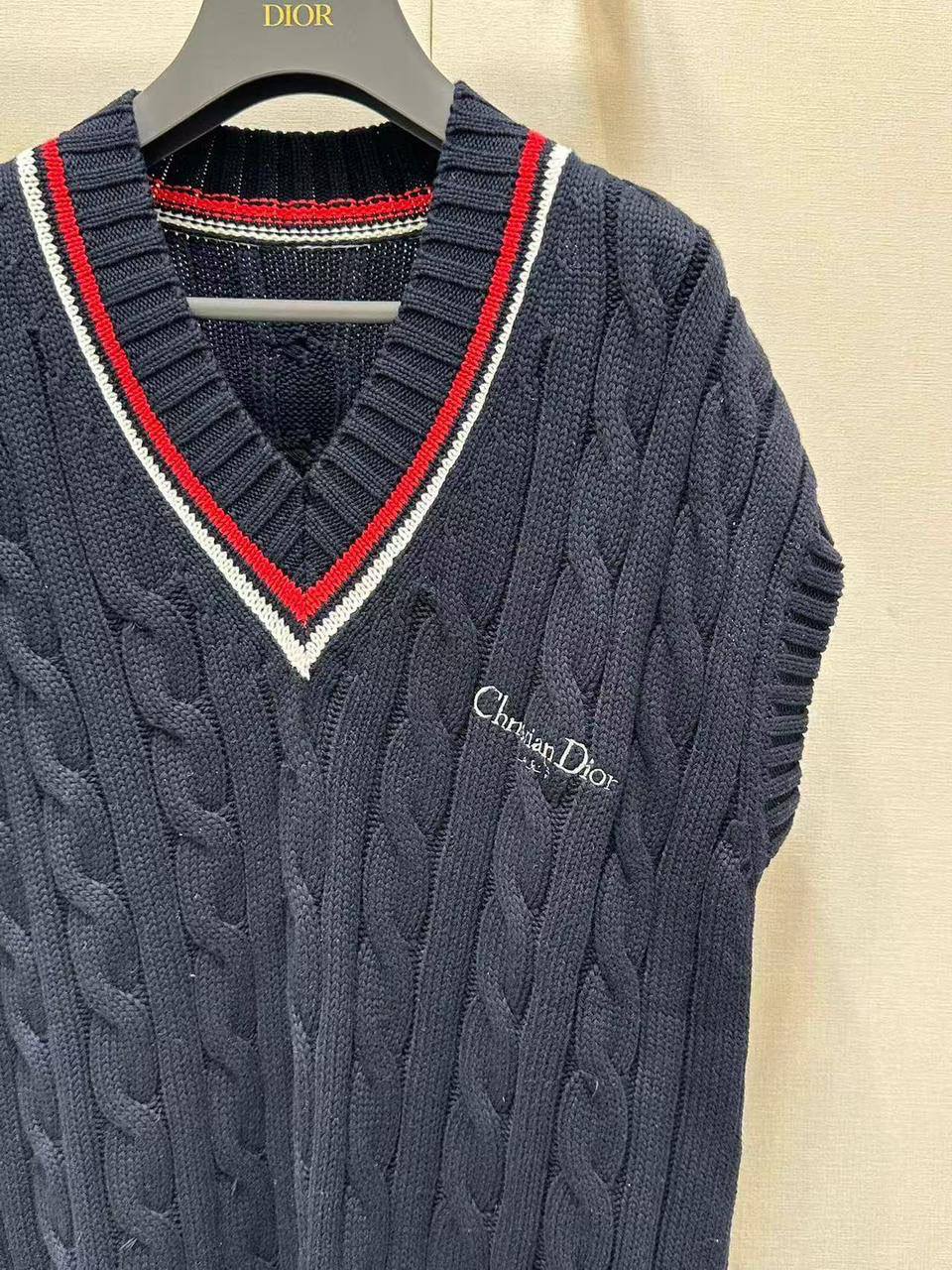 Жилет Christian Dior LUX-120884 – стильный и элегантный элемент гардероба, сочетающий в себе классический дизайн и современные тенденции. Трикотажный жилет с V-образным вырезом и узором «косы» добавит изысканности в любой образ.