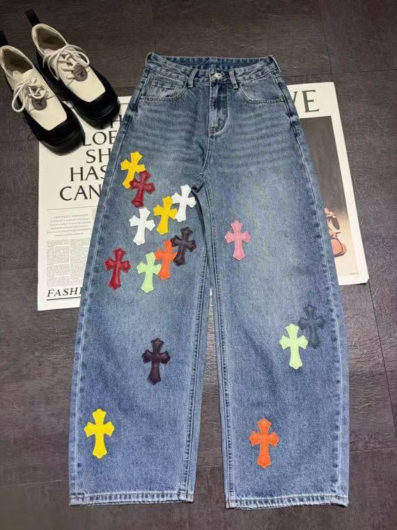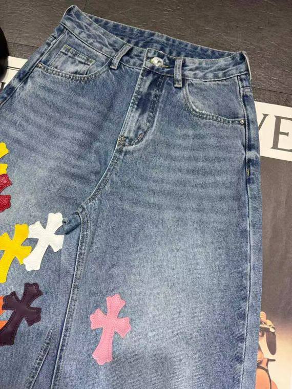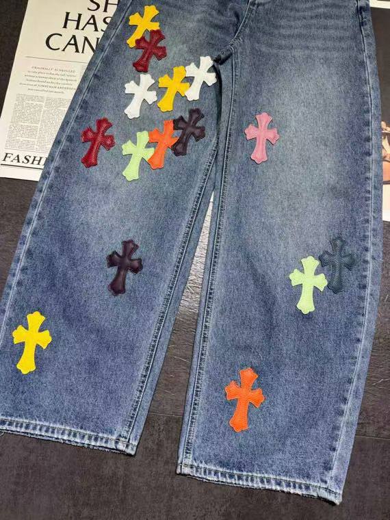 Джинсы CHROME HEARTS LUX-131353 – это стильный элемент гардероба, сочетающий в себе комфорт и яркий дизайн. Джинсы свободного кроя украшены разноцветными крестами, что придает им оригинальность.