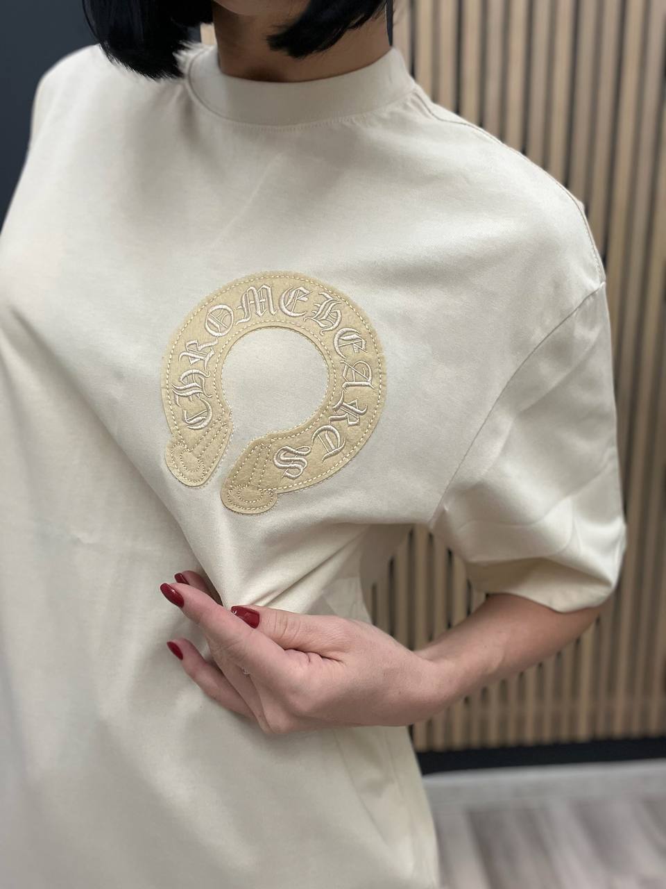 Футболка CHROME HEARTS LUX-103198 — это воплощение стиля и комфорта. Эта футболка кремового цвета, с крупным логотипом на груди, представляет собой идеальный выбор для создания повседневного образа. Она сочетает в себе узнаваемый дизайн бренда и универсальность, подходя как для мужчин, так и для женщин.