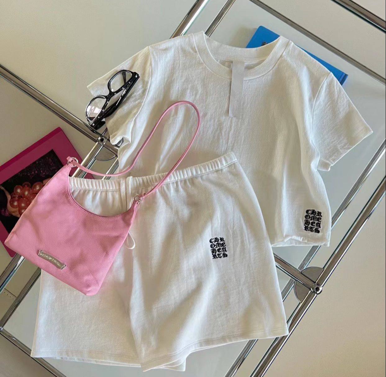 Костюм CHROME HEARTS LUX-71324 – это стильный летний комплект, представленный в белом цвете. Комплект включает в себя футболку с коротким рукавом и шорты с эластичным поясом. Этот комплект идеально подходит для создания повседневных образов в стиле casual.