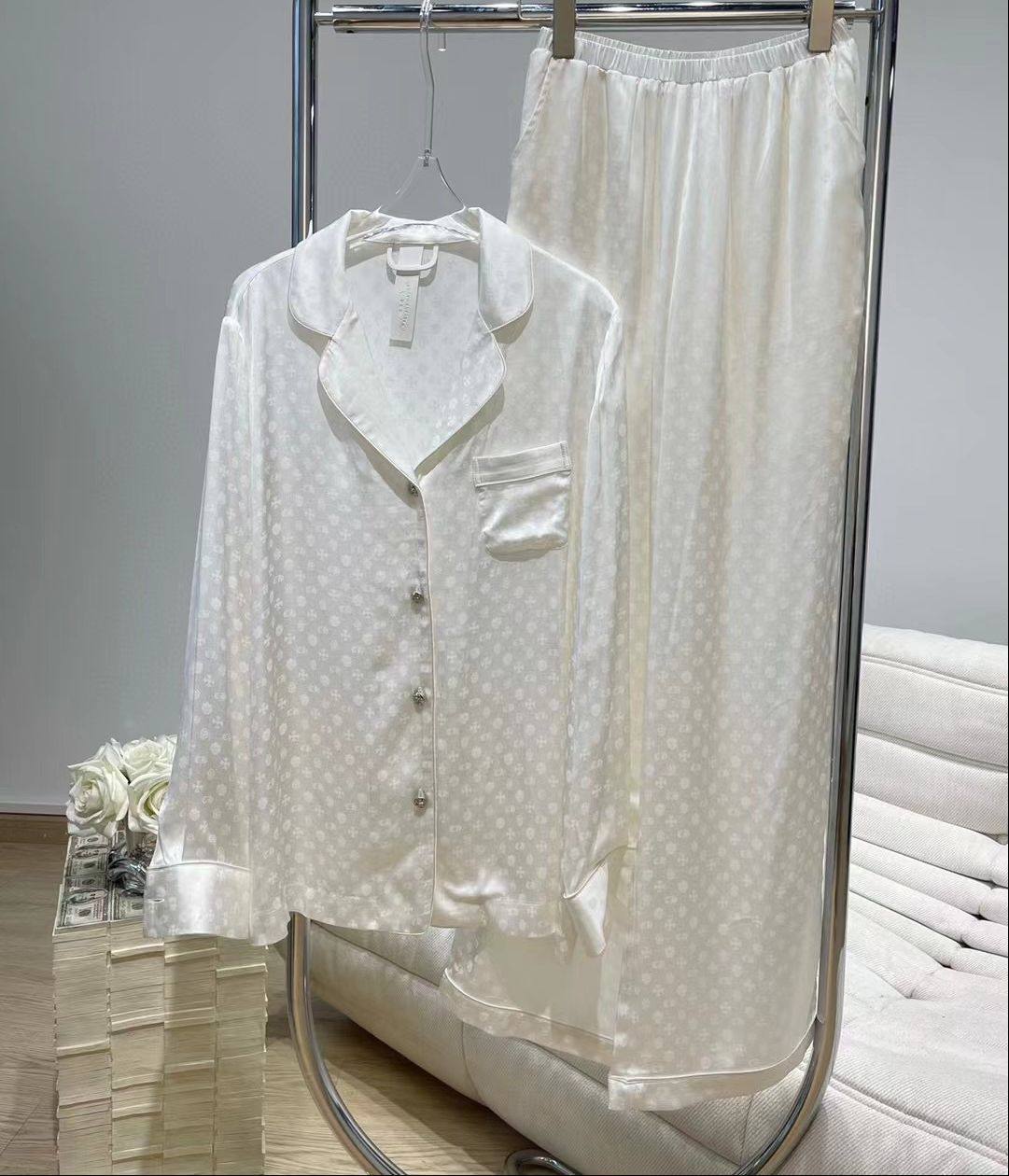 Костюм CHROME HEARTS LUX-72315, представленный на изображении, – это изысканный комплект, сочетающий в себе элегантность и комфорт. Белый костюм, выполненный в пижамном стиле, выглядит нежно и утонченно. Он идеально подходит для создания расслабленного образа.