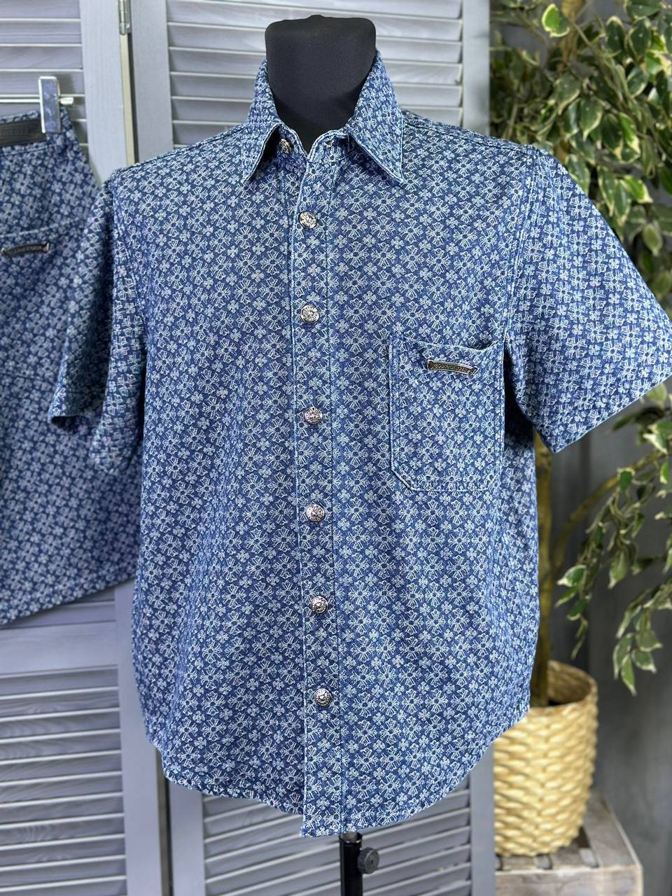 Костюм мужской CHROME HEARTS LUX-92044 - это стильный комплект одежды от известного бренда. Костюм выполнен в синем цвете с узором. Предназначен для создания комфортного и стильного образа.