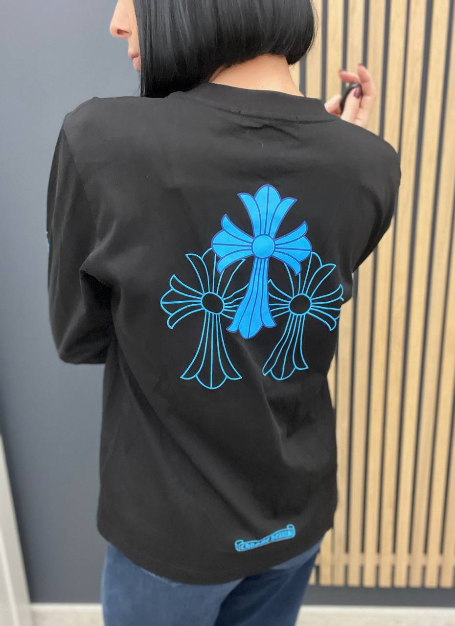 Лонгслив CHROME HEARTS LUX-102997 — это стильный предмет гардероба, выполненный в фирменном стиле бренда. Чёрный цвет изделия с яркими неоновыми принтами добавляет контрастности и делает образ выразительным. Лонгслив подойдет для создания повседневных и уличных образов.
