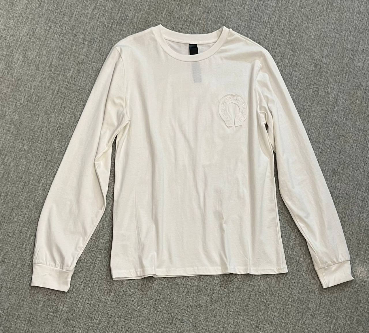 Лонгслив CHROME HEARTS LUX-93075 – это стильный предмет гардероба от известного бренда. Представленный лонгслив выполнен в классическом стиле, с длинными рукавами и круглым вырезом горловины. Цвет изделия – белый, что делает его универсальным и подходящим для создания различных образов.