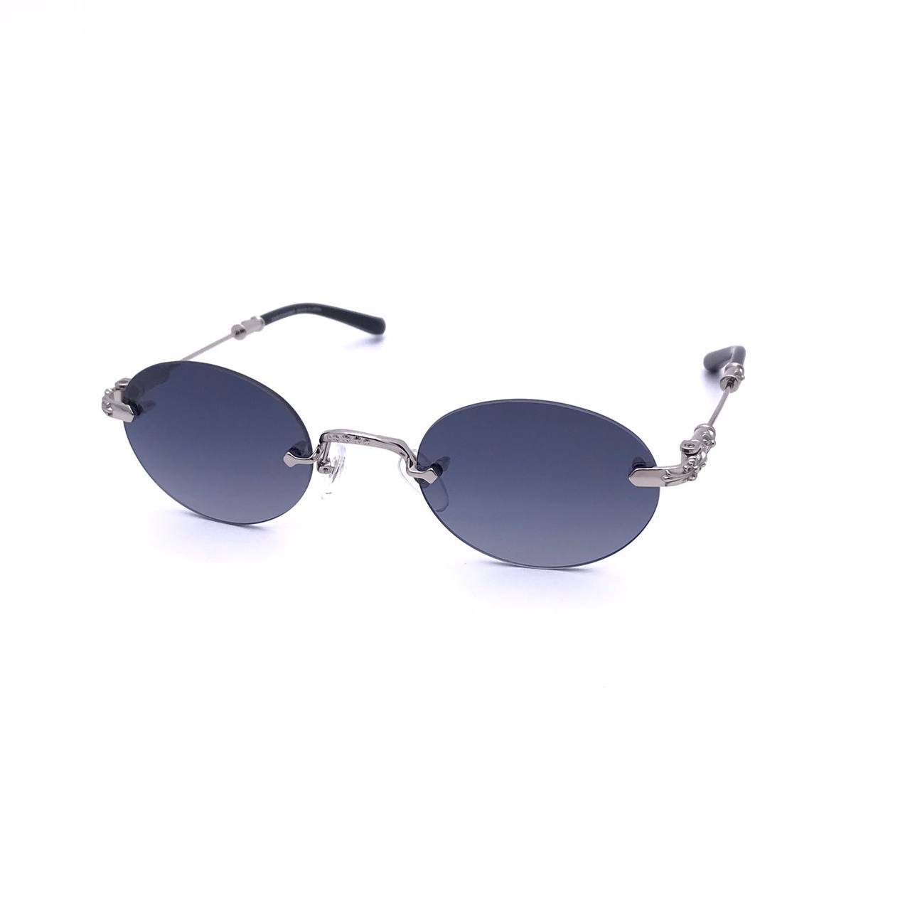 Очки CHROME HEARTS LUX-78776 — это стильный аксессуар, сочетающий в себе современный дизайн и роскошь. Оправа выполнена в серебристом цвете, а линзы имеют темно-серый градиент. Эти очки идеально подойдут для создания запоминающегося образа и защиты глаз от солнца.