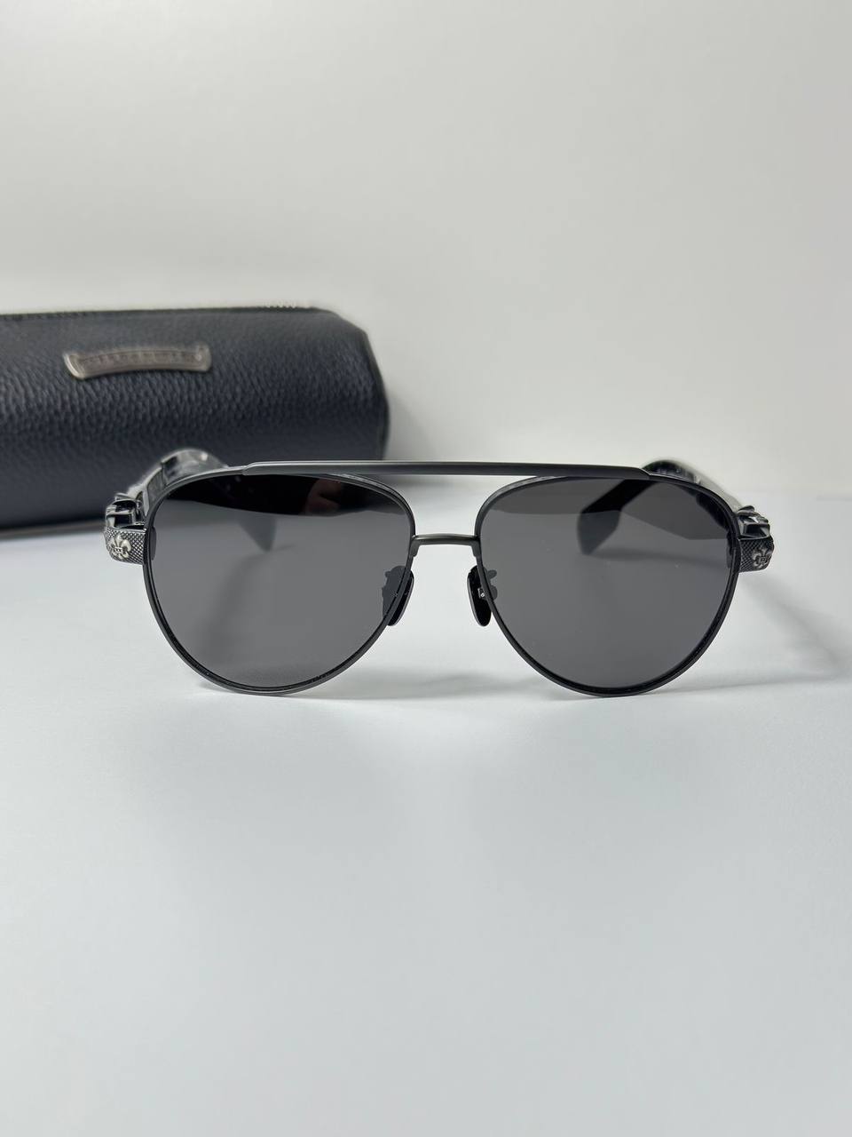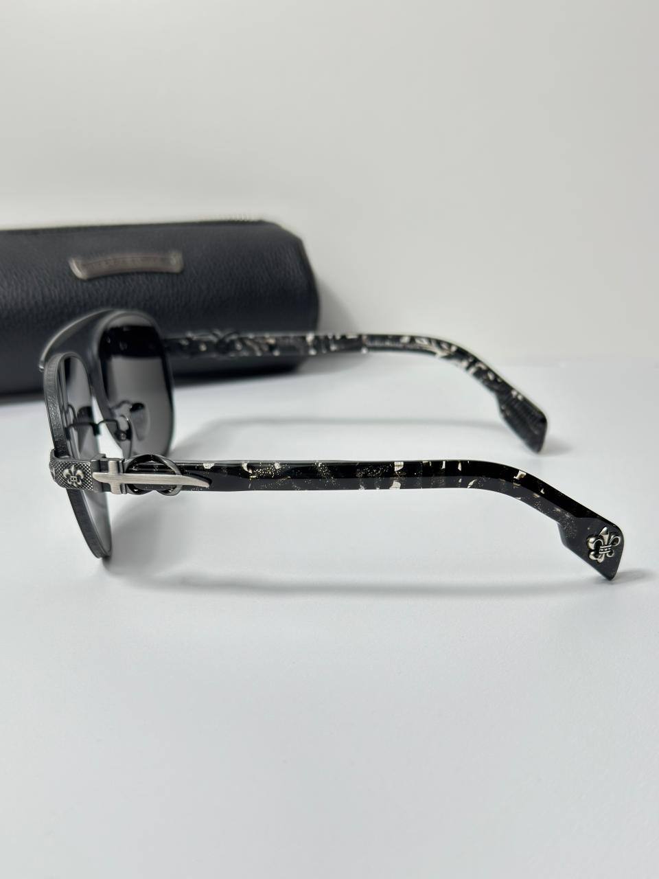 Очки CHROME HEARTS LUX-119278 — это стильный аксессуар, выполненный в классическом дизайне. Черные очки с темными линзами и серебристыми деталями на дужках, сочетающие в себе элегантность и практичность. Идеально подойдут для защиты глаз от солнца и дополнения любого образа.