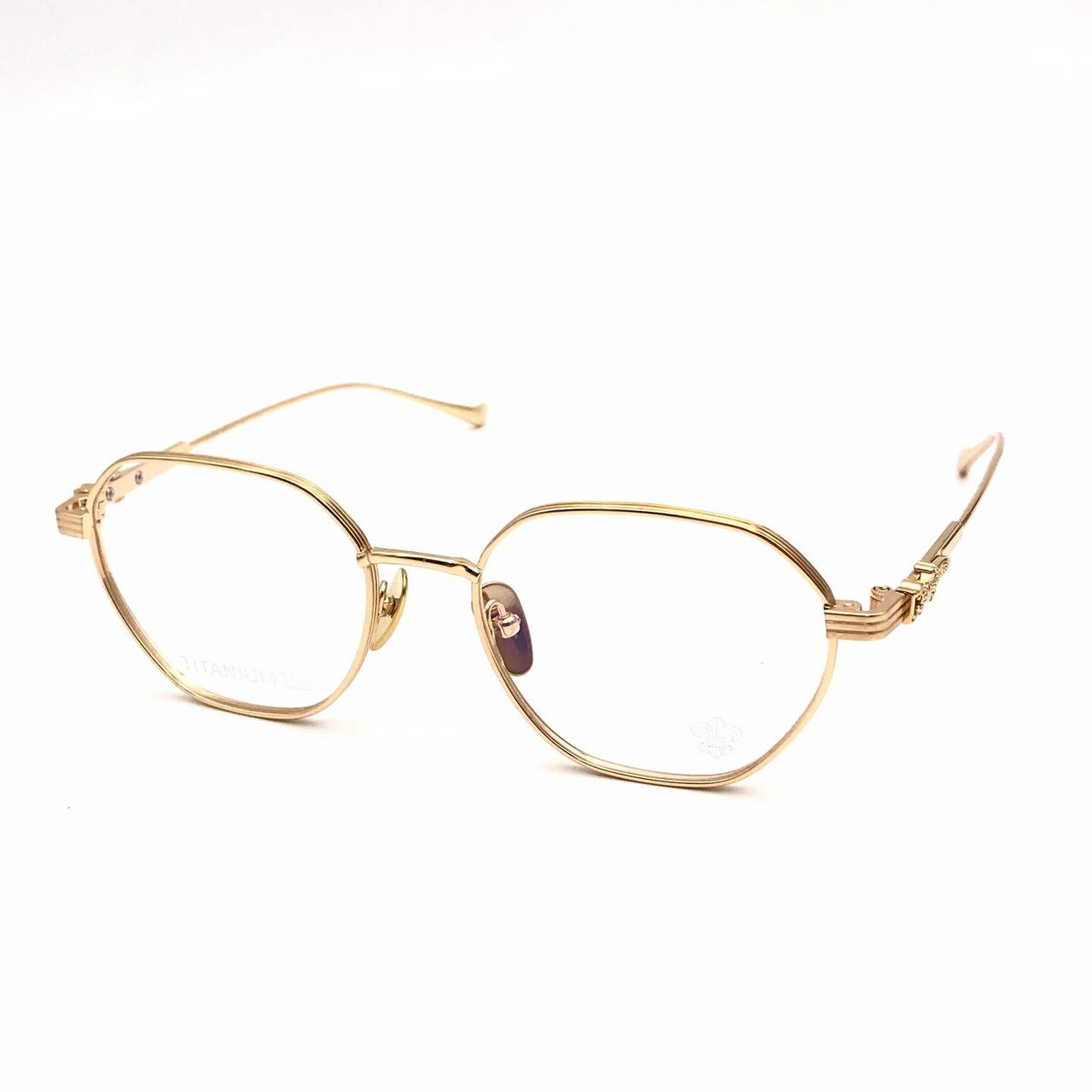 Оправа CHROME HEARTS LUX-77834 выполнена в золотистом цвете, что придает ей роскошный вид. Прямоугольная форма оправы в сочетании с изысканным дизайном создает стильный и современный аксессуар. Подходит для повседневного использования, дополняя любой образ.