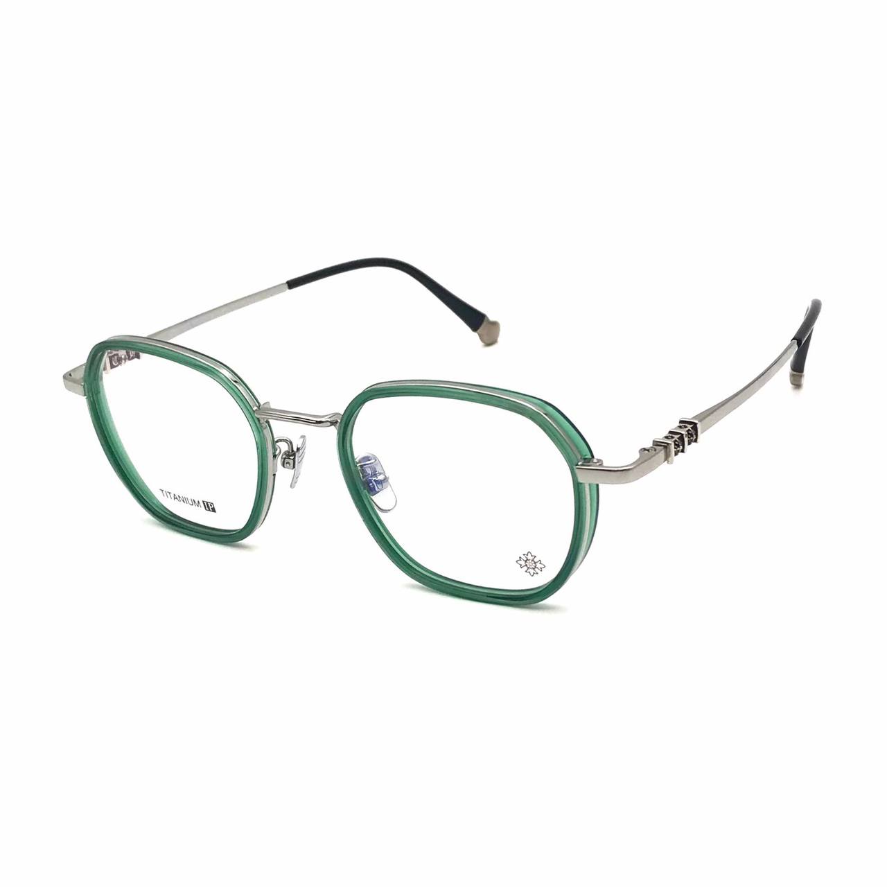 Оправа под диоптрию CHROME HEARTS LUX-80180. Эти очки сочетают в себе современный дизайн и изысканную эстетику. Оправа выполнена в круглом стиле с зеленым кантом, что придает ей уникальный и стильный вид.