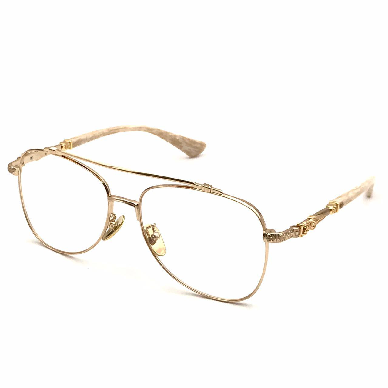 Оправа под диоптрию CHROME HEARTS LUX-71131 — это воплощение изысканности и стиля. Оправа выполнена в золотистом цвете, имеет текстуру, которая придает ей уникальный вид. Эта оправа предназначена для использования с диоптрийными линзами.