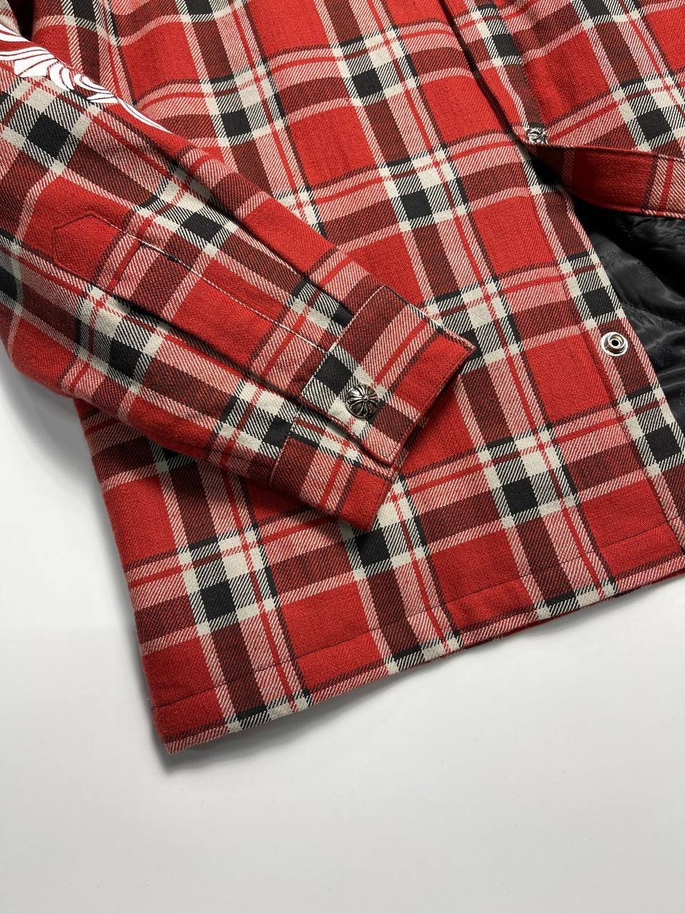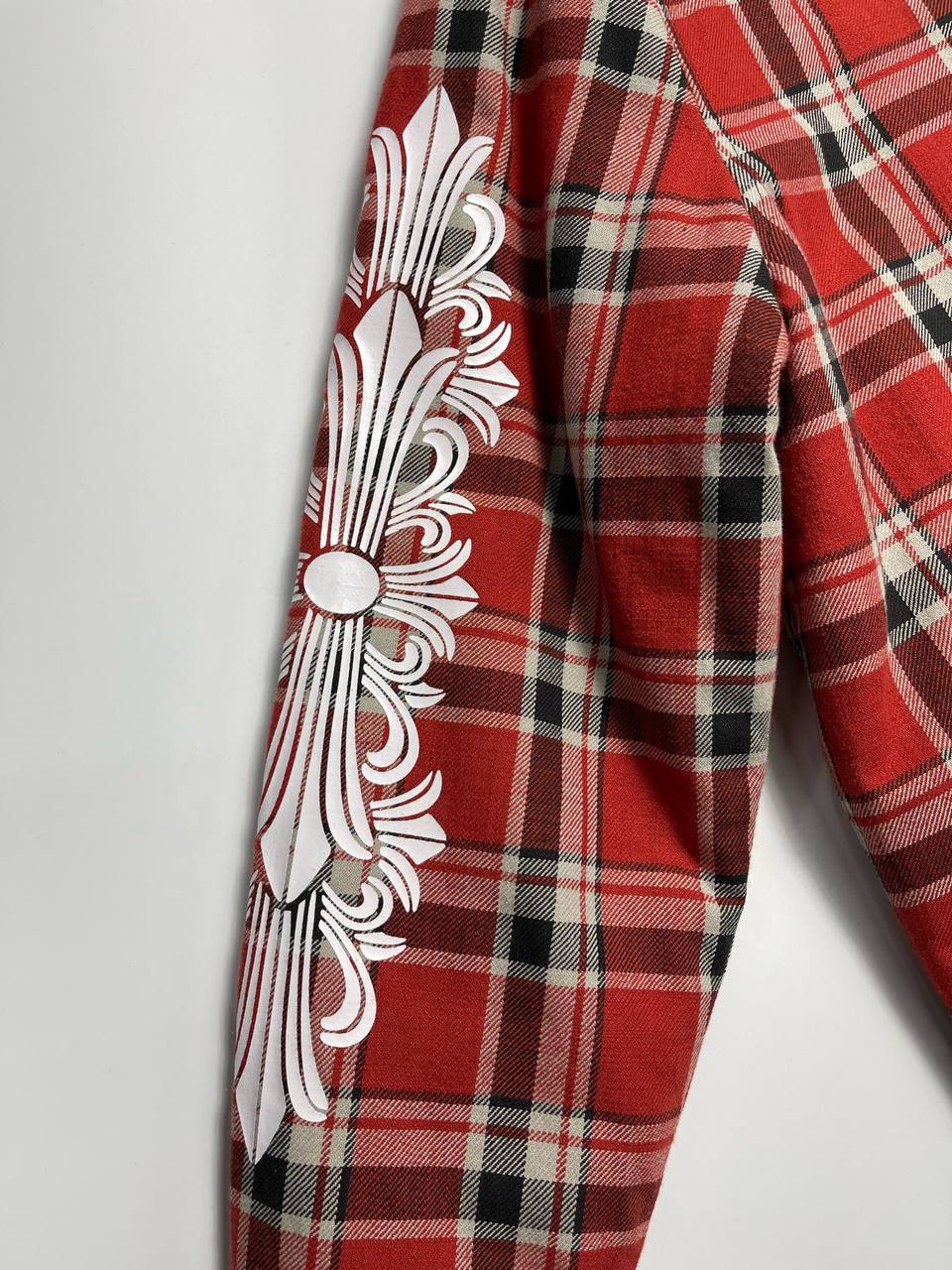 Рубашка CHROME HEARTS LUX-101885 представляет собой эффектную фланелевую рубашку в клетку красного цвета. Рубашка выполнена в стиле casual и украшена декоративными элементами на рукавах и серебряными пуговицами. Этот предмет гардероба идеально подойдет для создания стильных и выразительных образов.