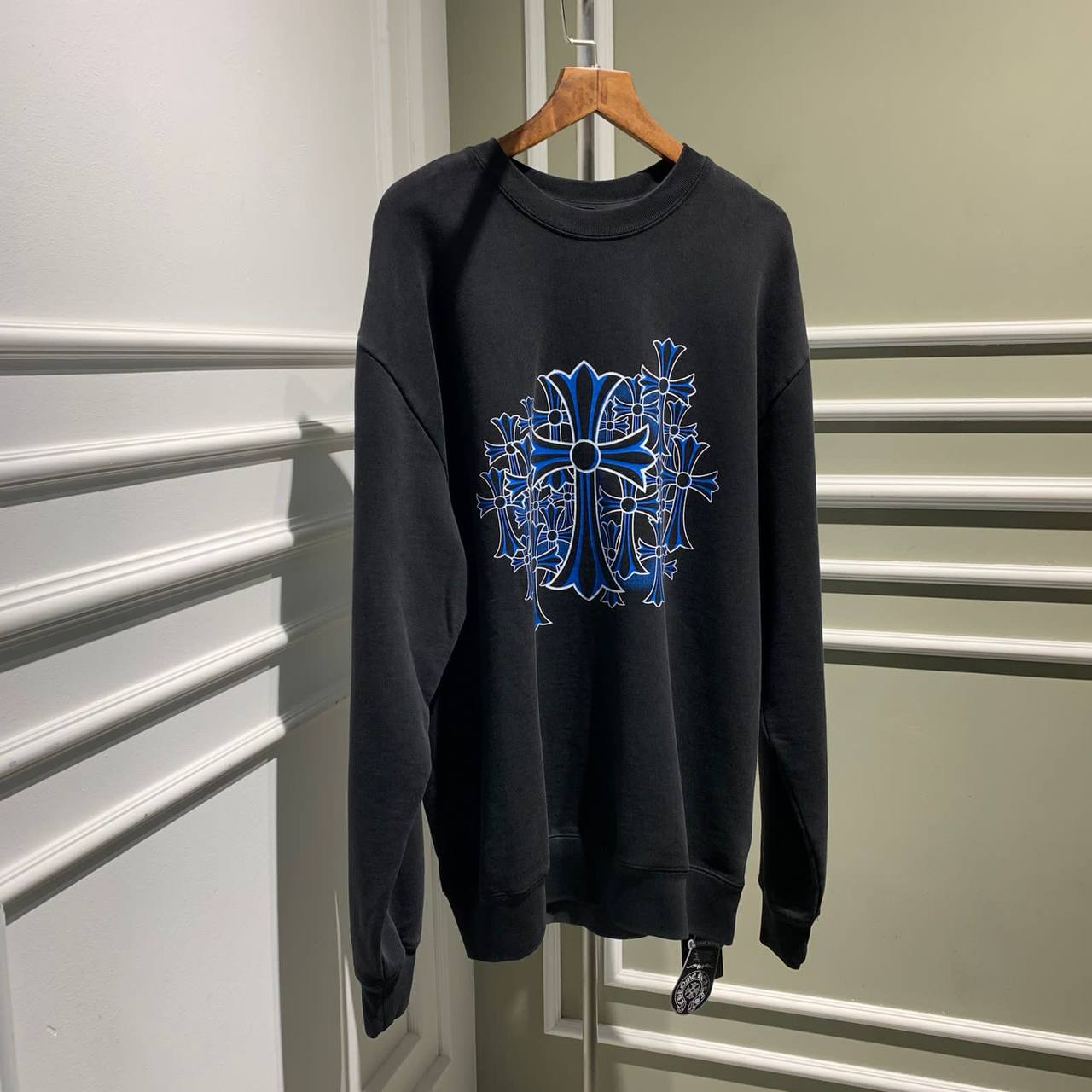 Свитшот CHROME HEARTS LUX-75306 – это стильная толстовка с классическим дизайном. Свитшот выполнен в черном цвете с уникальным принтом в виде креста в синих тонах. Идеальный выбор для создания повседневных образов.