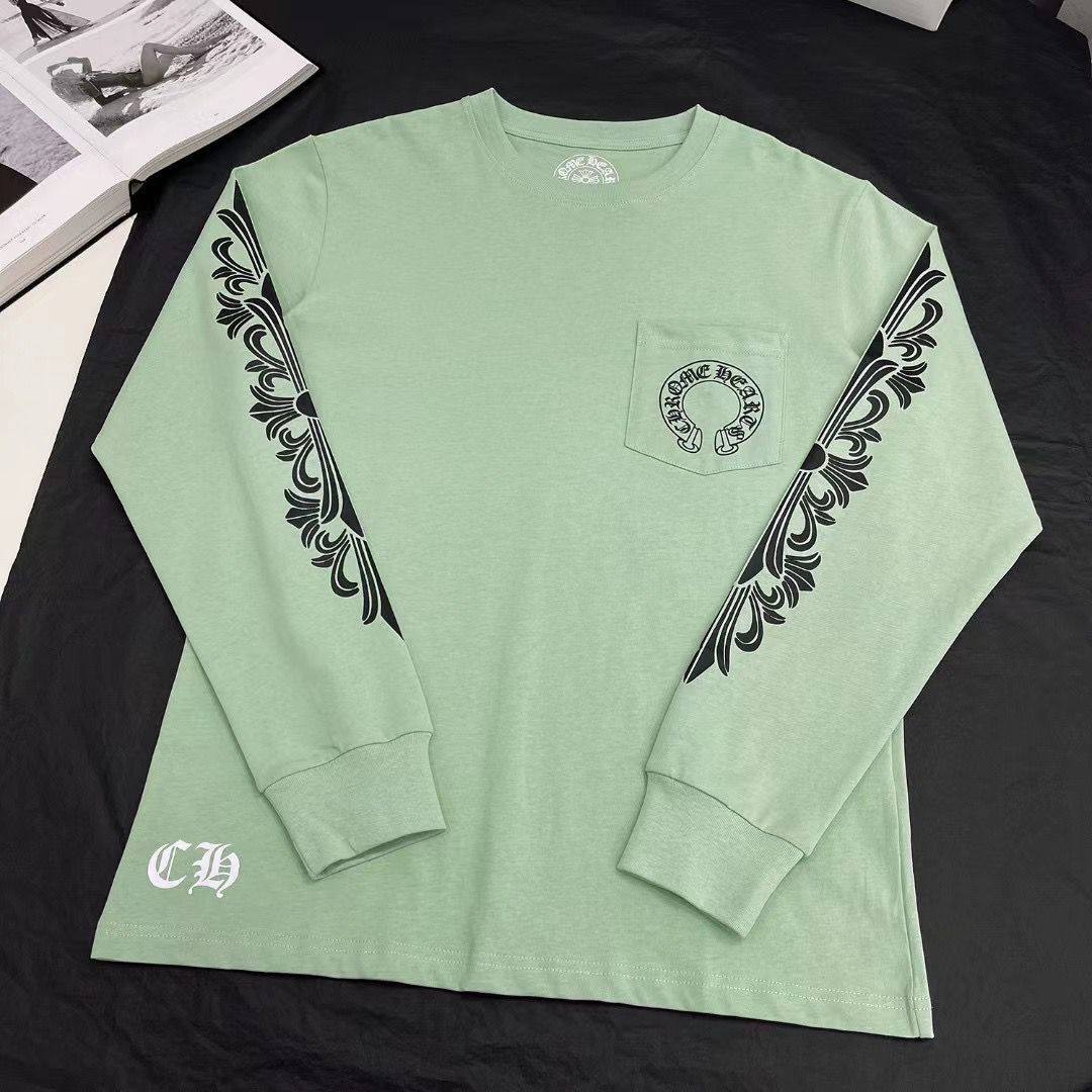 Свитшот CHROME HEARTS LUX-76160 — это предмет гардероба от известного бренда, сочетающий в себе стиль и комфорт. Свитшот выполнен в нежном мятном оттенке, дополнен черными графическими элементами на рукавах и нагрудным карманом с логотипом.