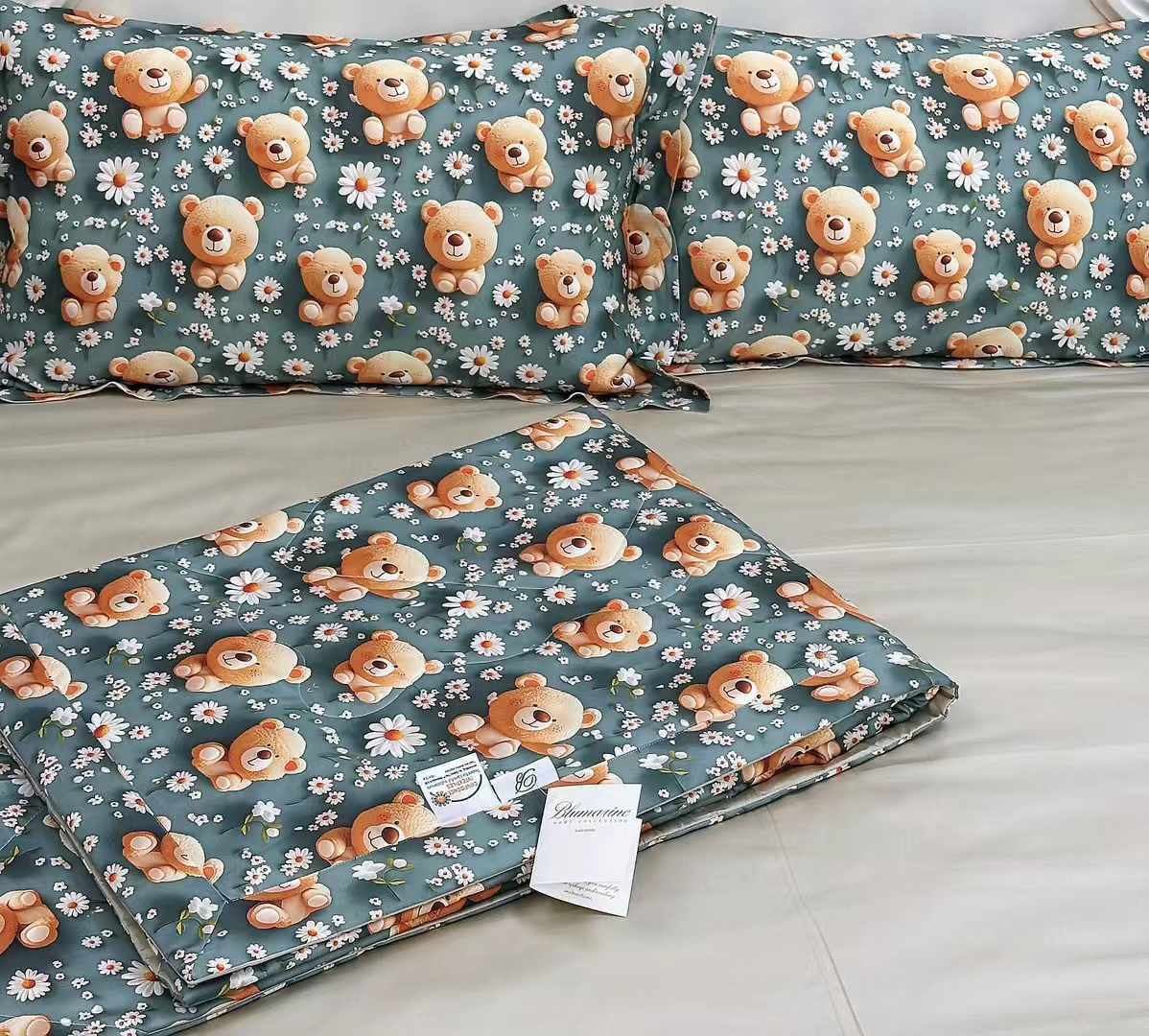 Детский комплект постельного белья Blumarine с милым принтом в виде плюшевых мишек и ромашек создаст уют и комфорт в детской комнате. Идеально подойдет для нежной и спокойной атмосферы сна.