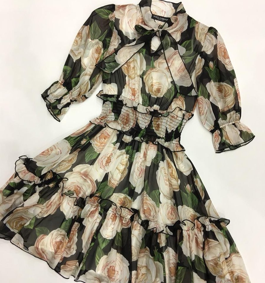 Платье Dita LUX-14281 от Dolce & Gabbana – это воплощение элегантности и женственности. Изделие выполнено в романтическом стиле, отличающемся воздушным силуэтом и изысканным цветочным принтом. Глубокий черный фон подчеркивает нежность кремовых роз, создавая завораживающий контраст. Платье идеально подходит для особых случаев, добавляя образу утонченности и роскоши.