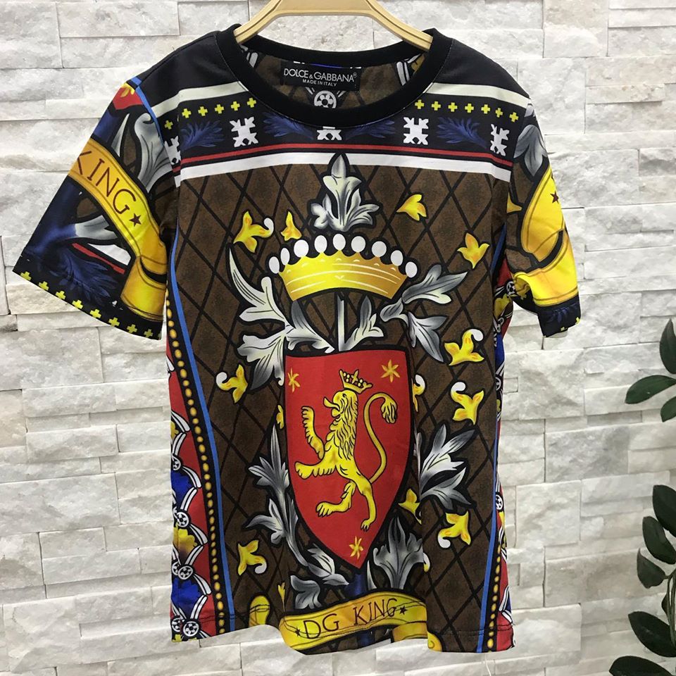 Футболка Dolce & Gabbana LUX-27931 – это яркий и стильный элемент гардероба, выполненный в узнаваемом стиле бренда. Модель привлекает внимание оригинальным принтом, сочетающим элементы геральдики, такие как корона и лев, с декоративными узорами. Эта футболка станет акцентной деталью образа, придавая ему роскошный и запоминающийся вид.