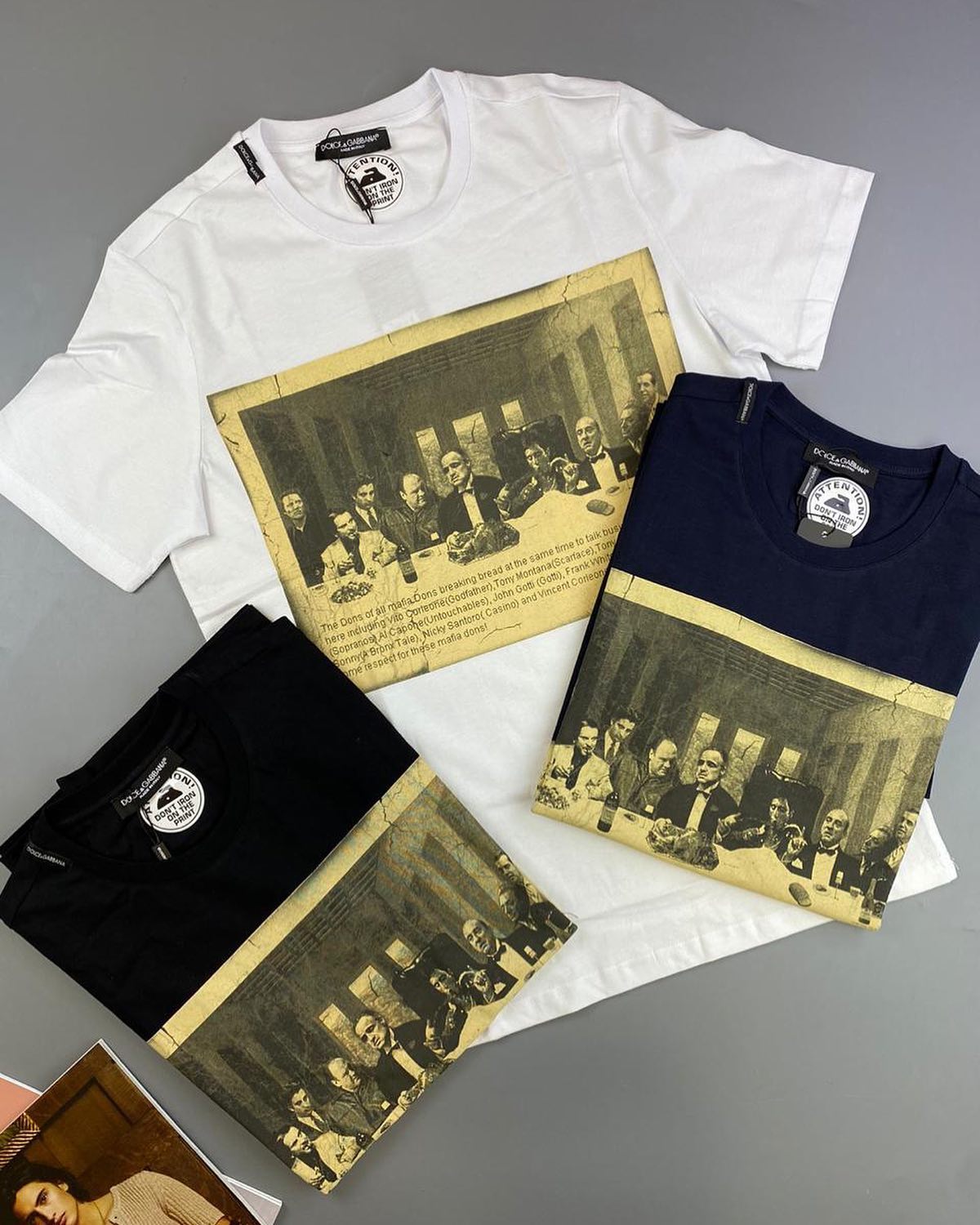 Футболка мужская Dolce & Gabbana LUX-31893 представляет собой стильный элемент гардероба, выполненный в классическом дизайне. На груди футболки расположен эффектный принт, изображающий известных гангстеров, что придает изделию особую выразительность и характер. Эта футболка идеально подходит для создания непринужденных, но при этом запоминающихся образов, подчеркивая индивидуальность владельца.