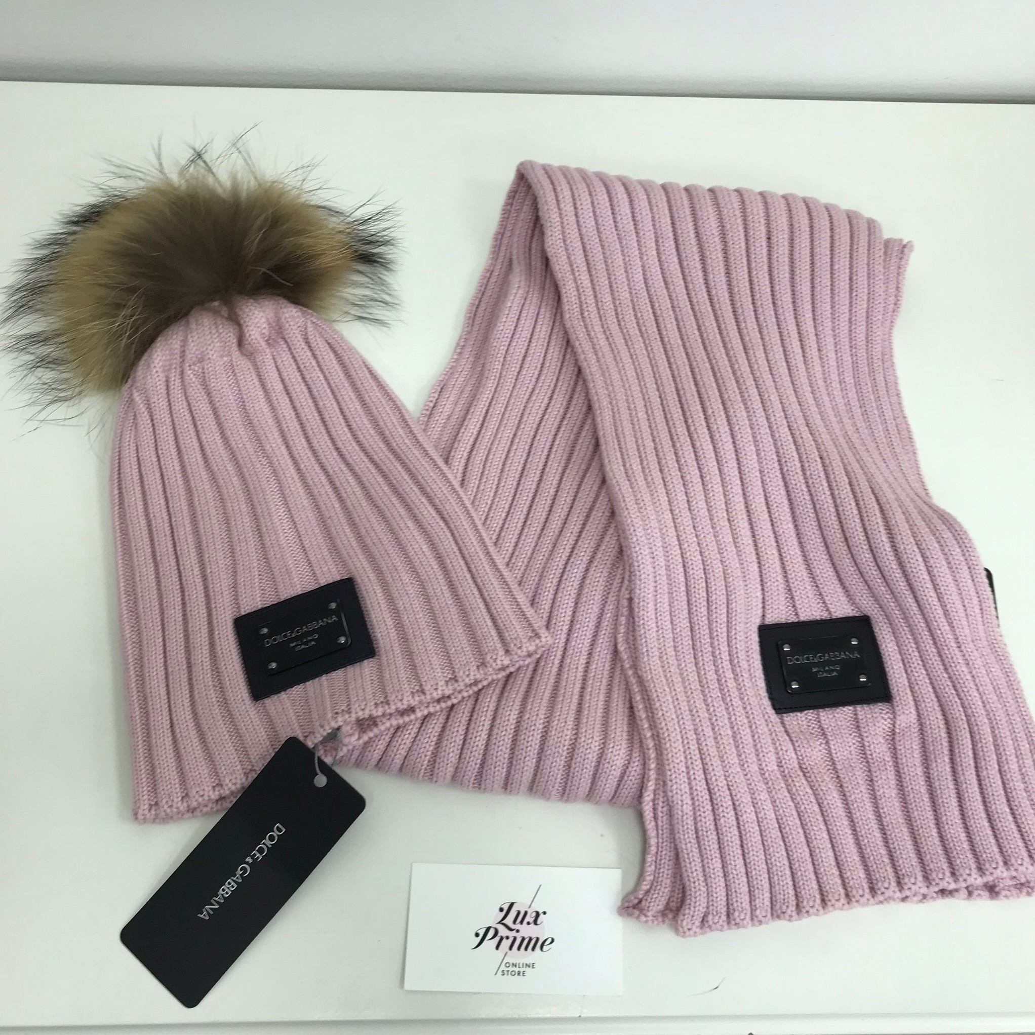 Этот комплект, включающий шапку с меховым помпоном и шарф, выполнен в нежном розовом цвете, что придает ему элегантный и женственный вид. Комплект Dolce & Gabbana LUX-18760 идеально подходит для создания стильных зимних образов, дополняя как повседневную, так и более нарядную одежду. Дизайн комплекта отражает узнаваемый стиль бренда, сочетая роскошь и практичность.