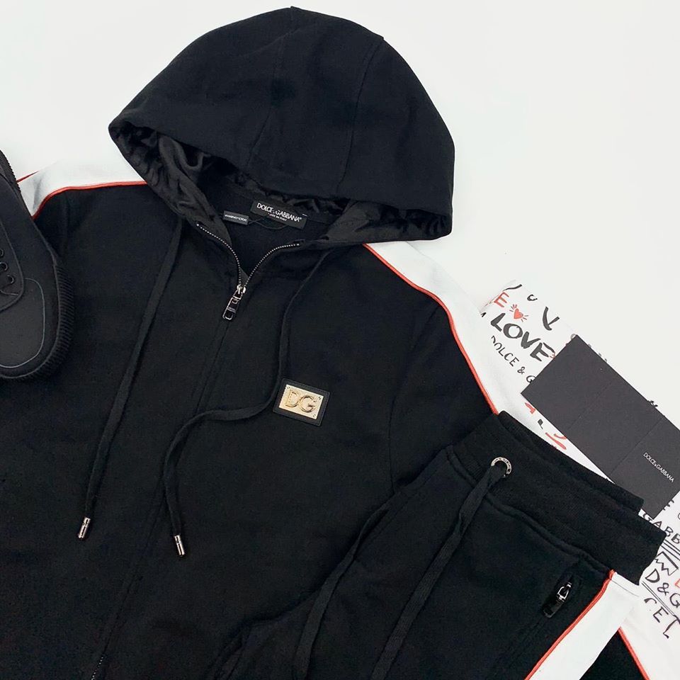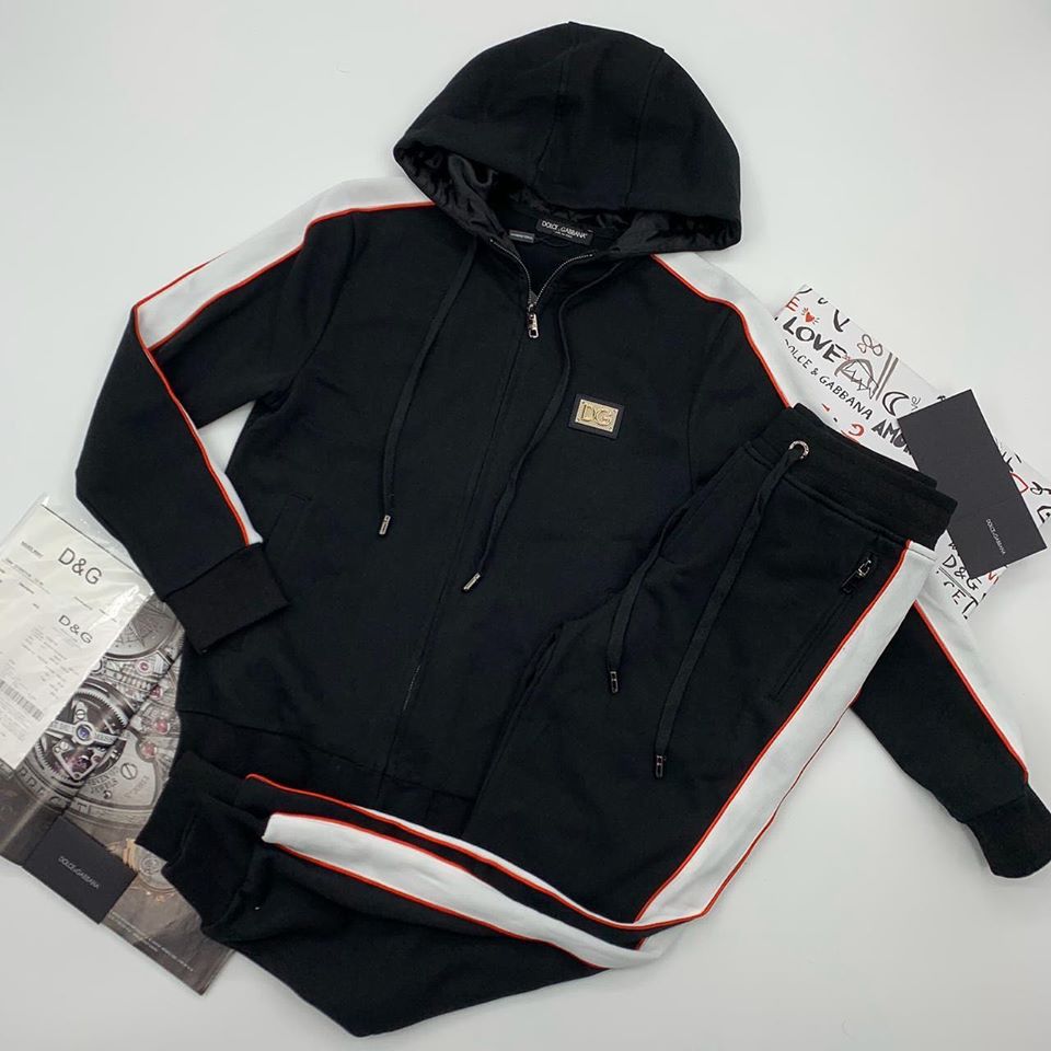 Спортивный костюм мужской Dolce & Gabbana LUX-22976 — это стильный выбор для современного мужчины, сочетающий в себе комфорт и роскошный дизайн. Костюм выполнен в классическом черном цвете с контрастными белыми и красными полосами по бокам, что придает ему динамичный вид. Модель идеально подходит для создания расслабленных, но при этом элегантных образов.