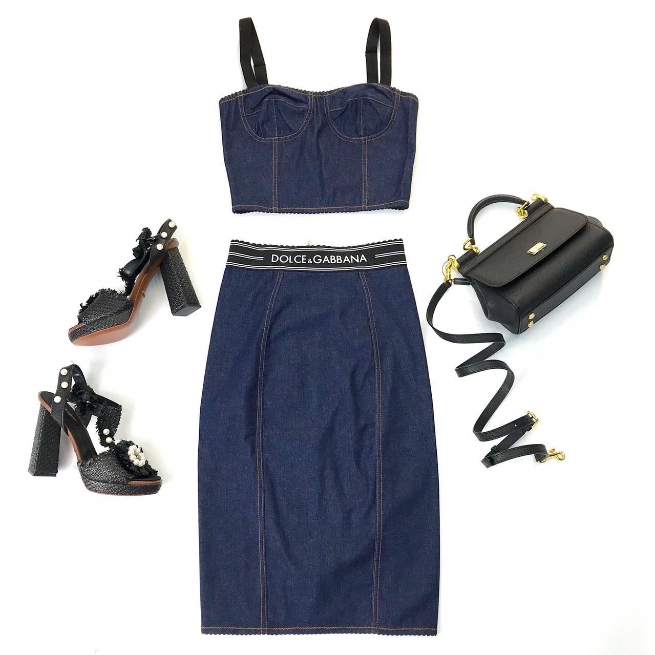 Представляем стильный женский костюм Dolce & Gabbana LUX-32490, состоящий из эффектного топа-бюстье и юбки-карандаш. Этот костюм выполнен в классическом джинсовом стиле, что делает его универсальным выбором для создания элегантных и модных образов. Идеально подходит для различных мероприятий, от дневных прогулок до вечерних выходов.