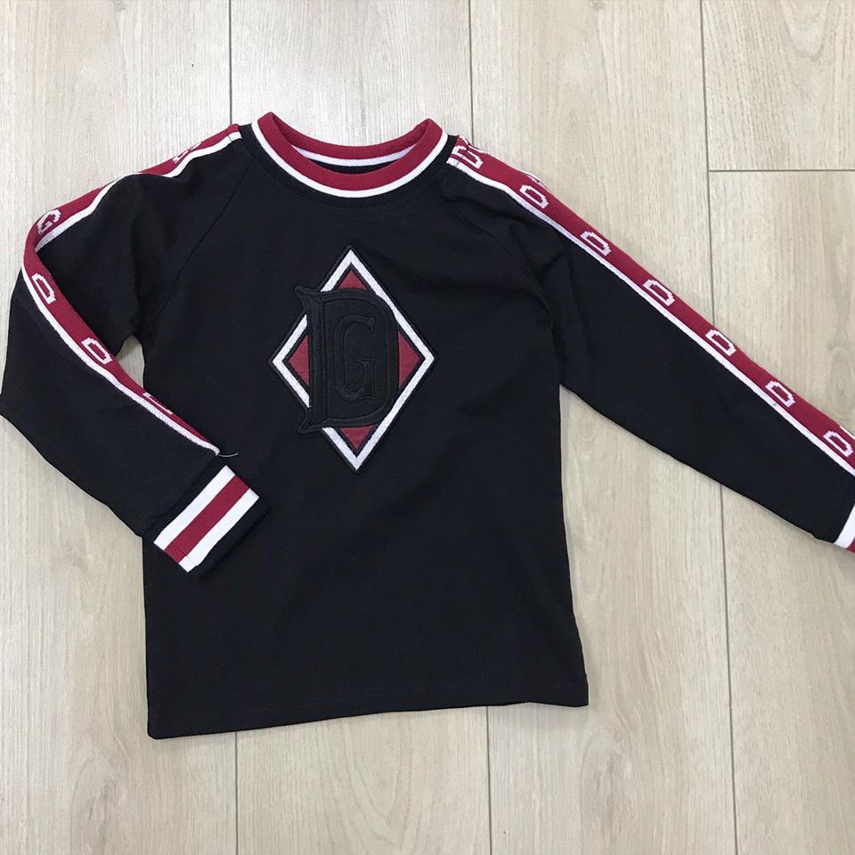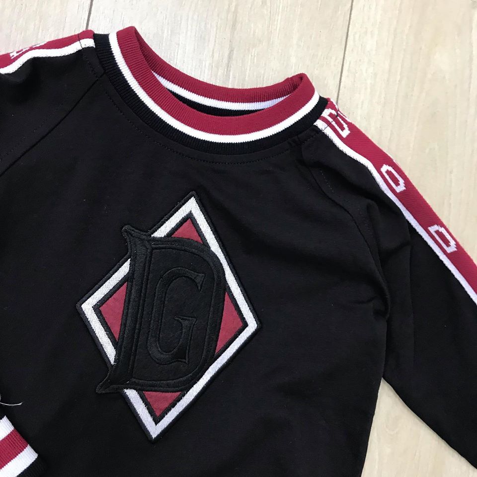 Лонгслив Dolce & Gabbana LUX-30383 — это стильный и модный выбор для тех, кто ценит комфорт и элегантность. Модель выполнена в классическом черном цвете, дополненном контрастными бордовыми и белыми деталями. Центральный элемент дизайна — крупная нашивка с логотипом бренда, выполненная в виде ромба с инициалами "DG", что подчеркивает эксклюзивность изделия.