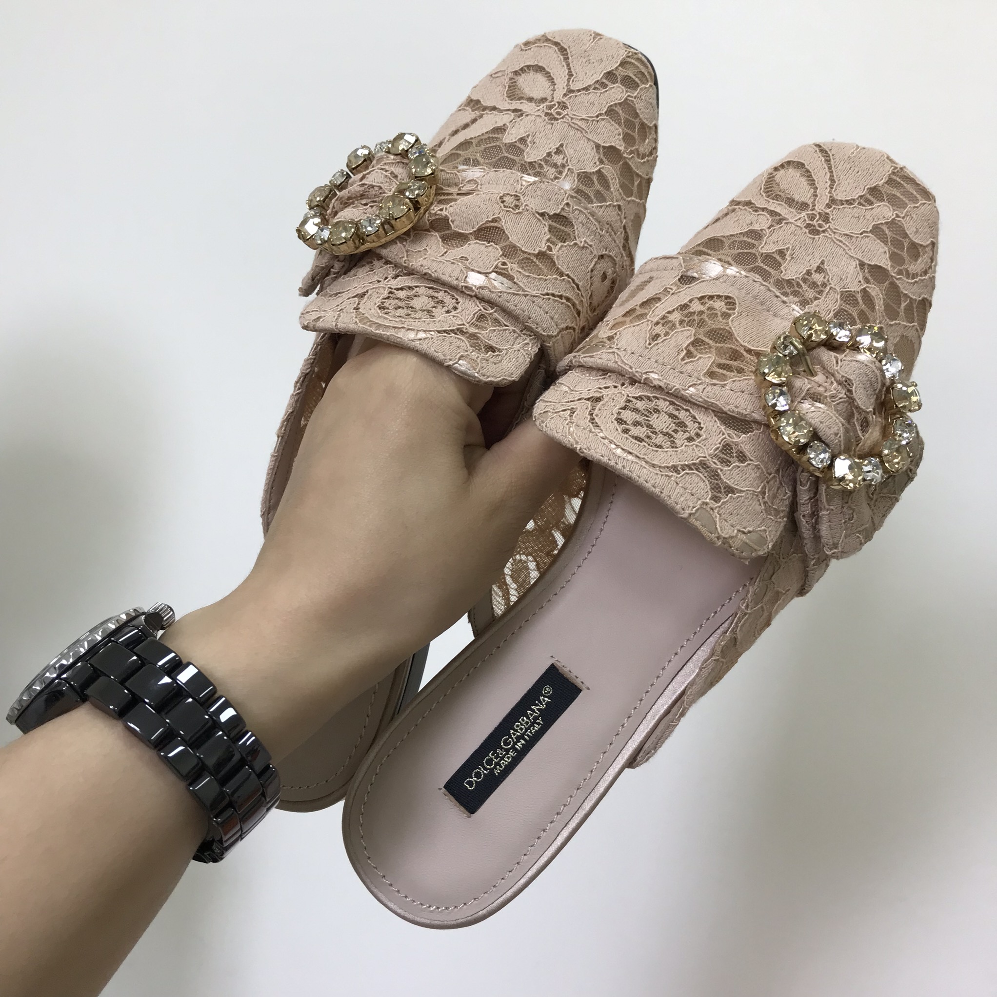 Эти элегантные мюли Dolce & Gabbana LUX-14419, выполненные из нежного кружева пудрового оттенка, станут изысканным дополнением вашего образа. Акцентная пряжка, украшенная сверкающими кристаллами, придает им роскошный вид. Эта модель идеально подойдет для особых случаев или для добавления шика в повседневный наряд.