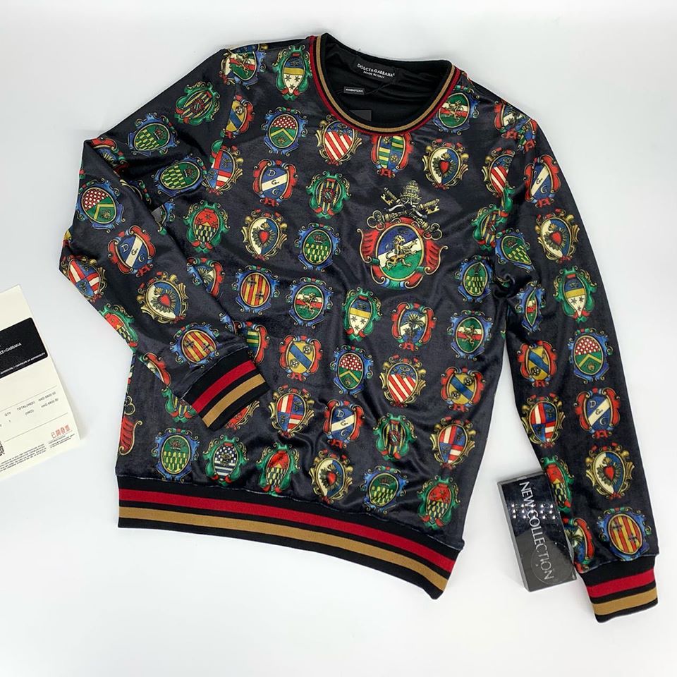 Мужская толстовка Dolce & Gabbana LUX-25944 – это яркое воплощение эксклюзивного итальянского стиля, сочетающее в себе смелость дизайна и высокое качество исполнения. Модель украшена уникальным принтом из разнообразных гербов, создавая эффект роскоши и индивидуальности, что подчеркивает статус своего владельца.
