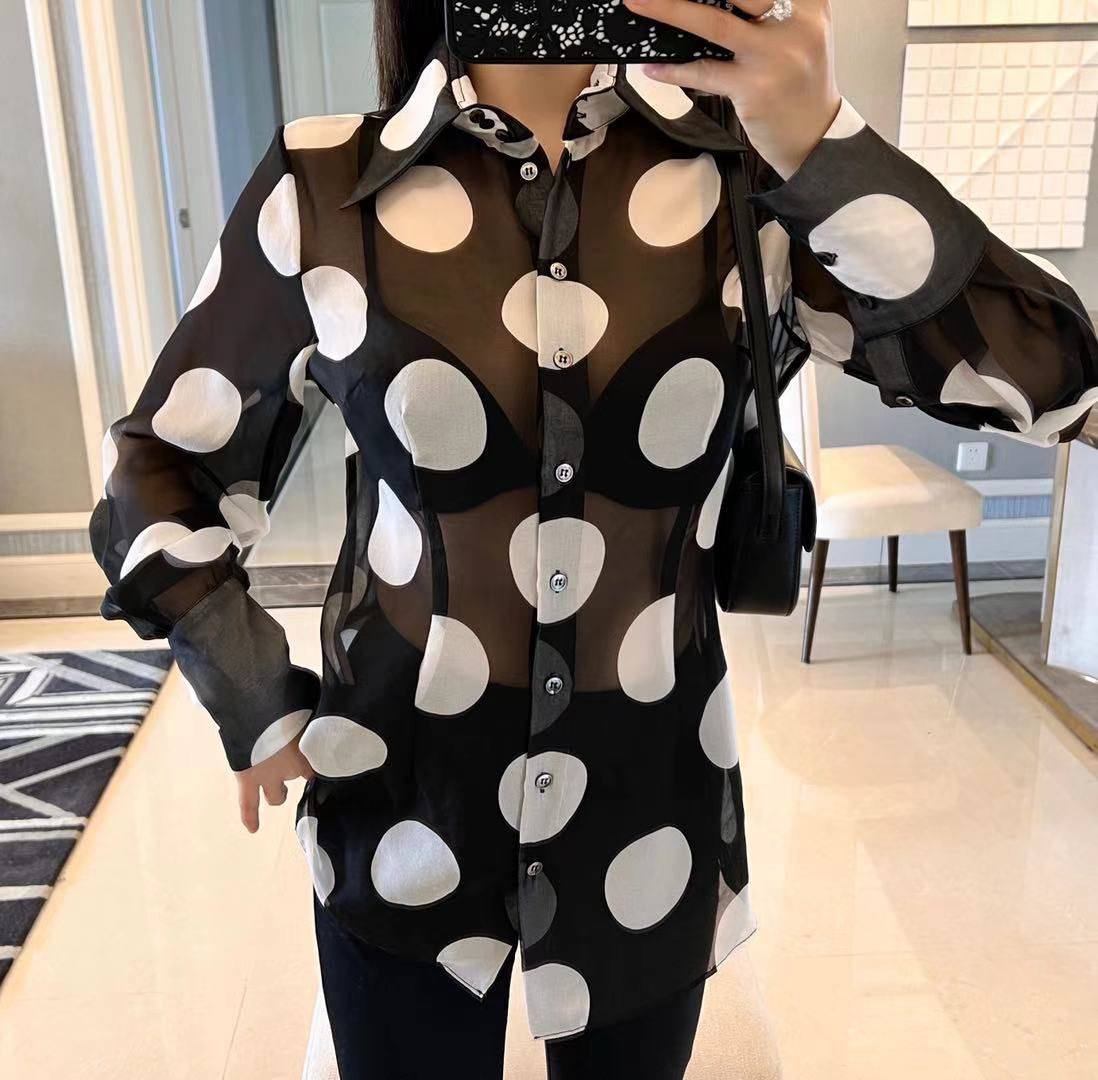 Эта прозрачная блузка Dolce & Gabbana LUX-68927 в горошек — воплощение элегантности и смелого стиля. Она идеально подойдет для создания эффектных образов, как вечерних, так и для особых случаев. Материал блузки легкий и воздушный, что придает образу невесомость и изящество.