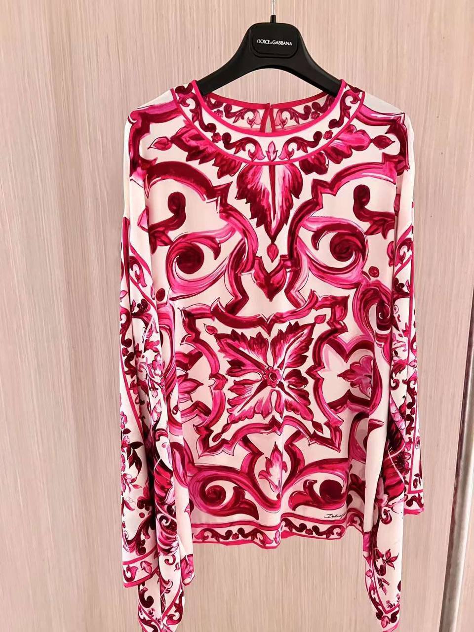Блузка Dolce & Gabbana LUX-91917 – это воплощение элегантности и стиля от известного бренда. Блузка выполнена в кремовом оттенке с ярким узором в бордово-розовых тонах, который придает изделию роскошный вид. Идеально подходит для создания как повседневных, так и праздничных образов.
