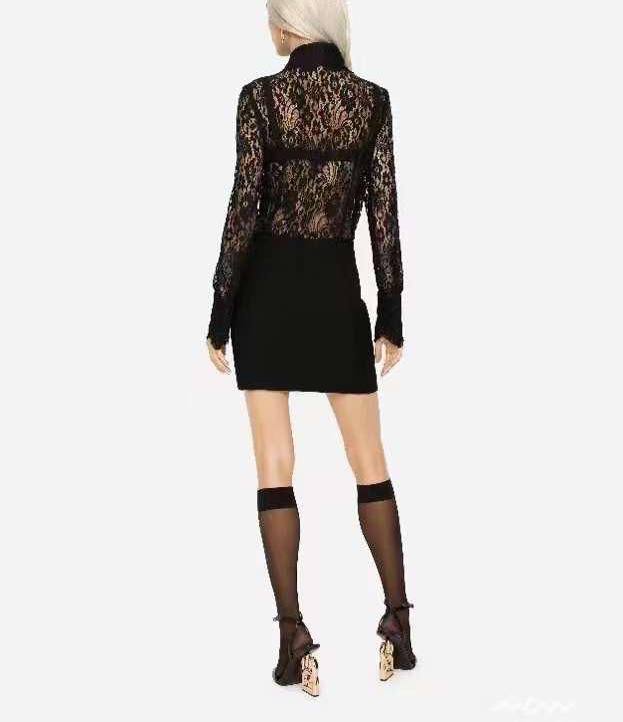 Блузка Dolce & Gabbana LUX-98594 — это изысканное воплощение элегантности и роскоши. Блузка черного цвета, с длинными рукавами и воротником, выполнена из кружевной ткани, подчеркивающей женственность и изящество. Идеально подходит для создания утонченных вечерних образов.