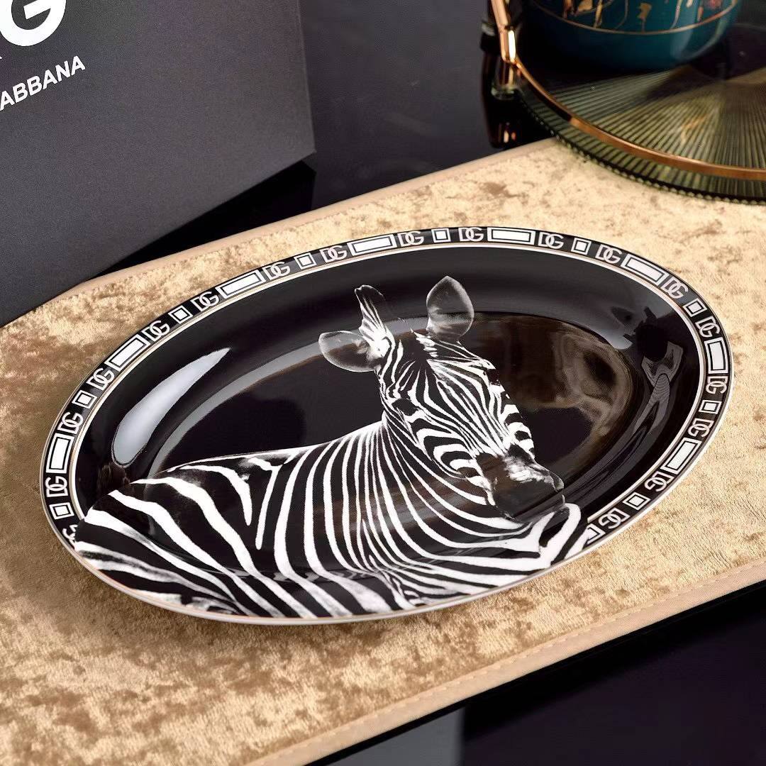 Блюдо Dolce & Gabbana с принтом зебры - это роскошный предмет интерьера, который добавит изысканности любому пространству. Элегантный дизайн и высокое качество исполнения делают его прекрасным дополнением к вашей коллекции.