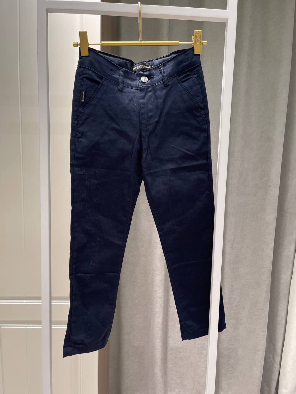 Брюки Dolce & Gabbana LUX-120019, представленные на изображении, – это стильные брюки темно-синего цвета, которые подойдут для создания как повседневных, так и более формальных образов. Брюки отличаются практичным дизайном с классическим кроем, что делает их универсальным элементом гардероба.