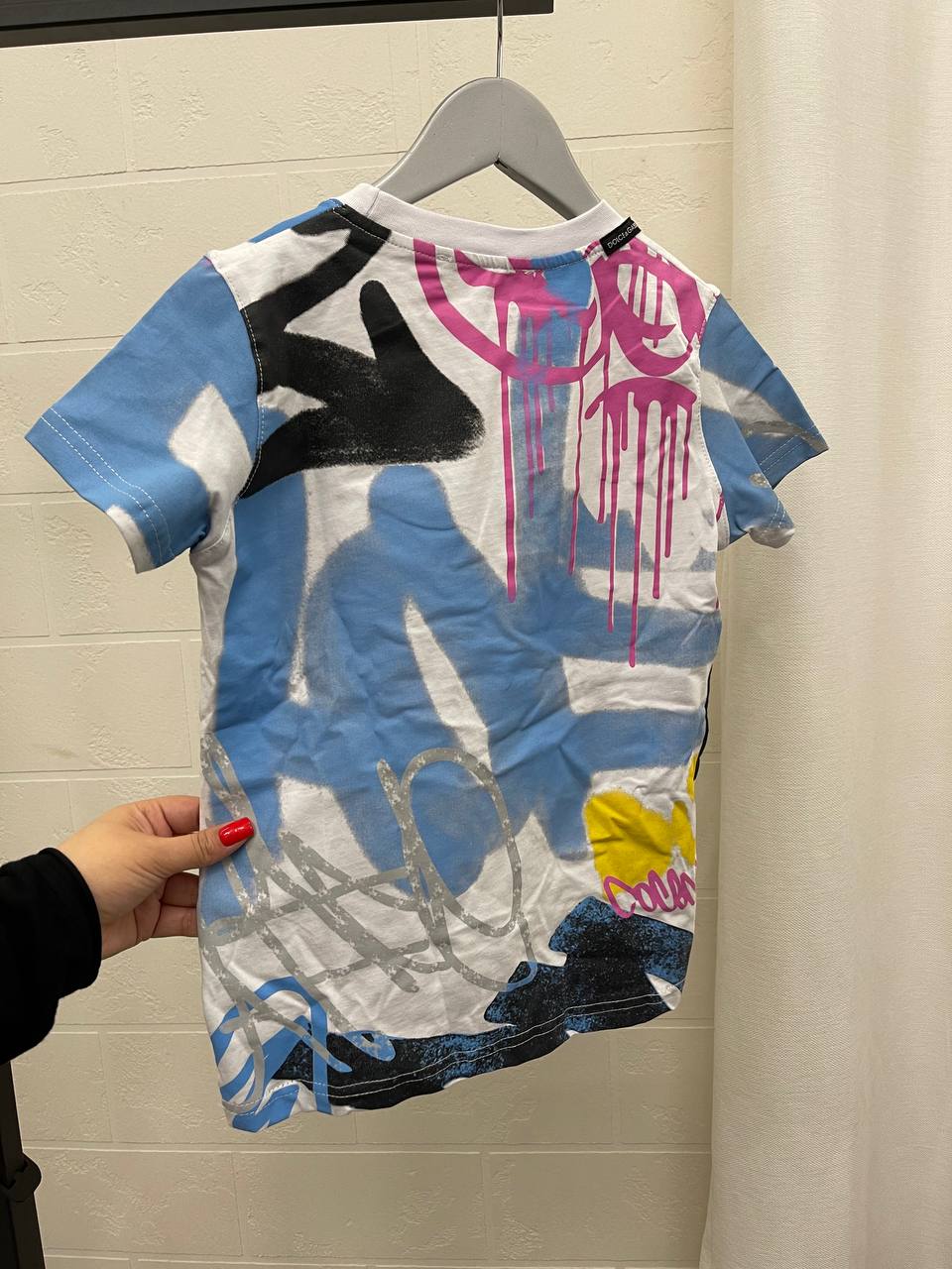 Футболка Dolce & Gabbana LUX-102267 представляет собой стильный предмет гардероба с ярким дизайном. Она выполнена в белом цвете с элементами граффити и контрастными вставками на рукавах. Эта футболка предназначена для повседневной носки, подчеркивая индивидуальность и современный стиль.