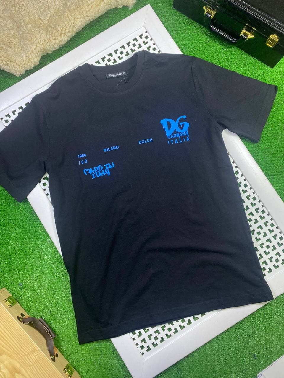 Футболка Dolce & Gabbana LUX-63649 – это стильная мужская футболка черного цвета с ярким принтом. Модель отличается оригинальным дизайном, сочетающим логотип бренда с текстовыми элементами, отсылающими к истории марки и месту создания. Такая футболка станет отличным дополнением к повседневному или спортивному гардеробу, подчеркивая ваш вкус и приверженность к люксовым брендам.