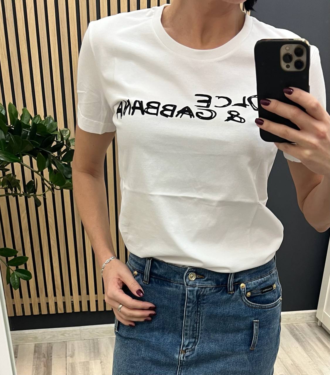 Футболка Dolce & Gabbana LUX-102581 представляет собой стильный предмет гардероба. Белая футболка с черным логотипом Dolce & Gabbana, выполненная в классическом стиле, подойдет для создания различных образов.