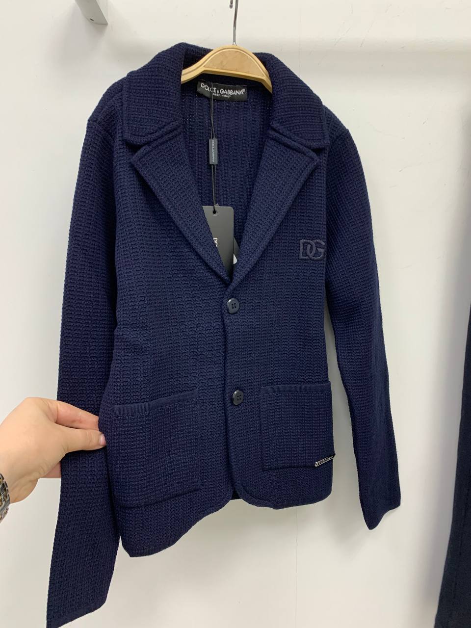 Кардиган Dolce & Gabbana LUX-93060 — это элегантный предмет гардероба, выполненный в классическом стиле. Кардиган насыщенного темно-синего цвета, с текстурированным плетением, имеет форму пиджака, что делает его универсальным для различных образов. Подходит как для повседневной носки, так и для создания более формальных ансамблей.