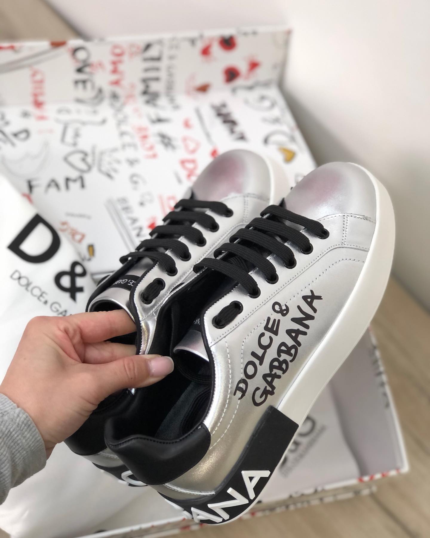 Эти кеды Dolce & Gabbana LUX-46231 — воплощение итальянского стиля и роскоши. Модель выполнена в эффектном серебристом цвете с контрастными черными деталями, включая шнурки и задник. Дизайн дополнен фирменной надписью бренда, подчеркивающей эксклюзивность. Это идеальный выбор для создания ярких и запоминающихся образов.