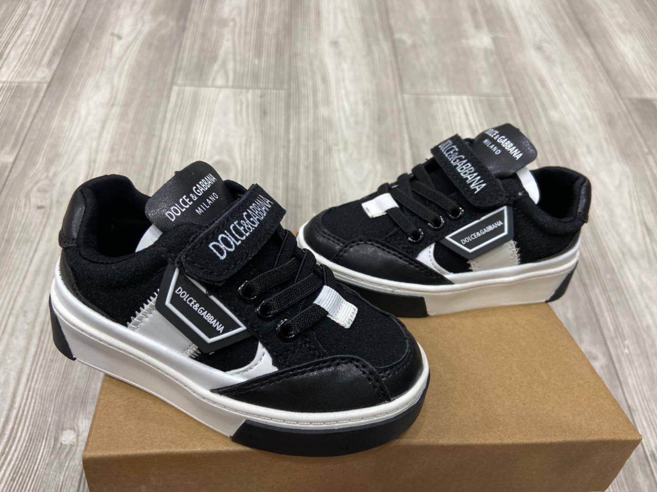 Кеды Dolce & Gabbana LUX-73867 - это стильная обувь для детей, выполненная в классическом черном цвете с белыми элементами. Эта модель отличается лаконичным дизайном и удобной конструкцией, подходящей для повседневной носки. Кеды украшены логотипом бренда и застежками-липучками для удобства.