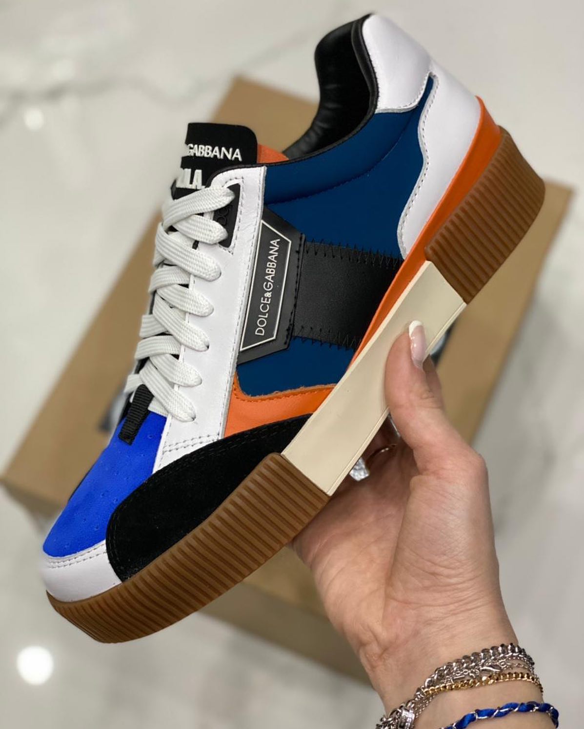 Эти кеды Dolce & Gabbana LUX-43798 сочетают в себе яркий дизайн и комфорт. Их многослойная конструкция и контрастные цвета создают современный и стильный образ, подходящий для повседневного использования.