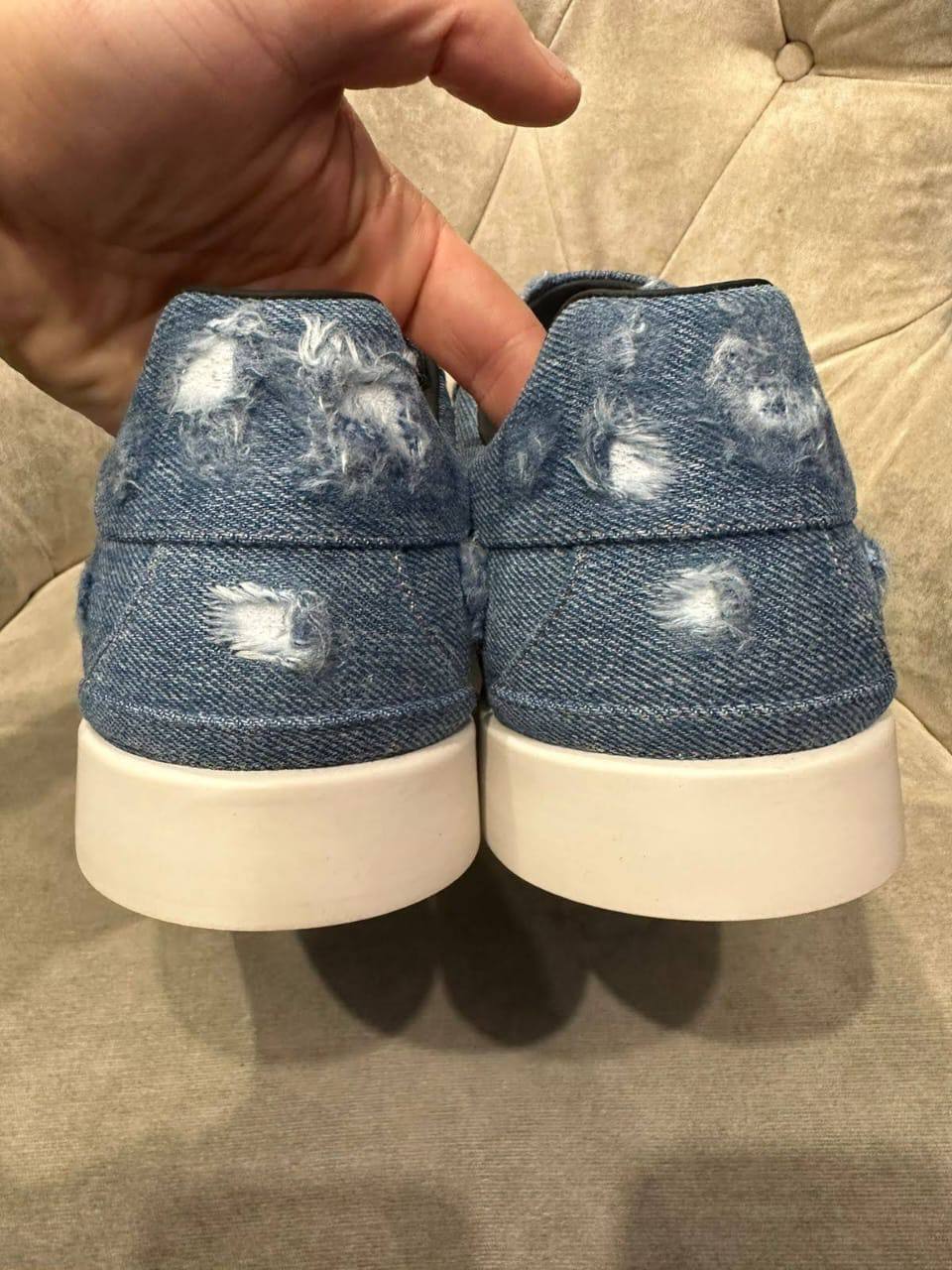 Мужские кеды Dolce & Gabbana LUX-93195, представленные на изображении, выполнены в стиле casual. Кеды имеют джинсовую текстуру синего цвета с элементами искусственного состаривания. Предназначены для повседневной носки, идеально сочетаются с джинсами или брюками.