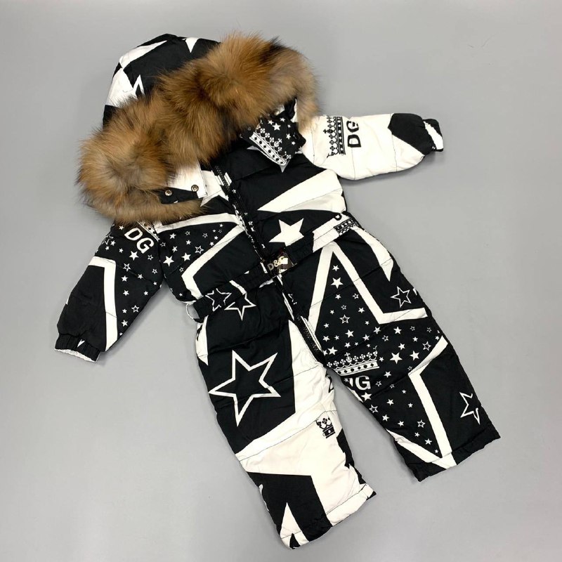 Этот комбинезон Dolce & Gabbana LUX-53049 – стильный выбор для маленьких модников. Яркий черно-белый принт со звездами и коронами придает модели узнаваемый вид. Капюшон с натуральным мехом обеспечивает дополнительное тепло и защиту от непогоды. Идеально подходит для активных игр и прогулок в холодное время года, сочетая в себе комфорт и эффектный дизайн.