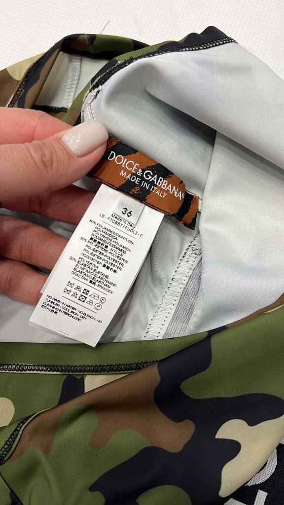 Комплект Dolce & Gabbana LUX-83650 - это стильный спортивный комплект, выполненный в стиле милитари. Комплект состоит из топа и леггинсов, выполненных в камуфляжной расцветке. Он идеально подойдет для тренировок, активного отдыха и создания модных образов в стиле casual.