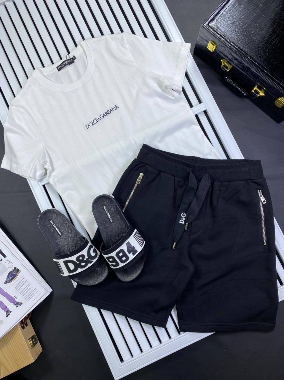 Представленный набор из футболки и шорт от Dolce & Gabbana LUX-49372 выполнен в современном спортивном стиле. Белая футболка с принтом логотипа бренда идеально сочетается с черными шортами, создавая гармоничный и стильный образ. Этот комплект подойдет для повседневного ношения, активного отдыха и создания расслабленных, но элегантных образов.