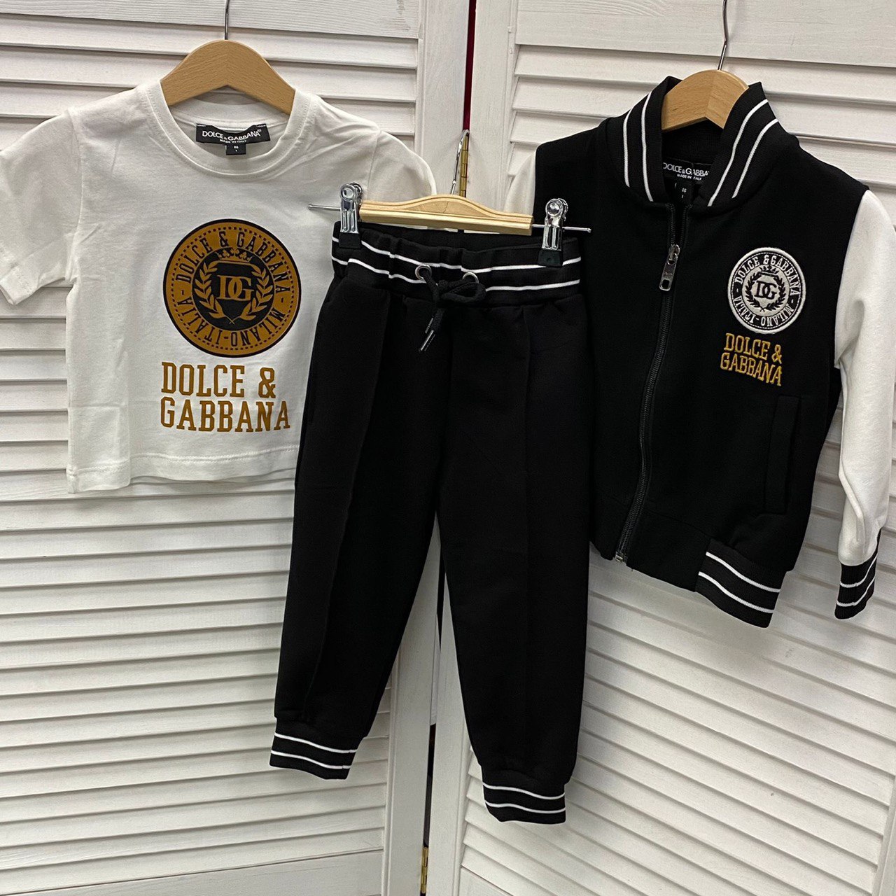 Костюм 3-ка Dolce & Gabbana LUX-84239 - это стильный комплект для детей, сочетающий в себе элементы спортивного и повседневного стиля. Комплект выполнен в классической черно-белой гамме с яркими деталями. Этот костюм подойдет для различных активностей, от прогулок до особых случаев, придавая образу элегантность и комфорт.