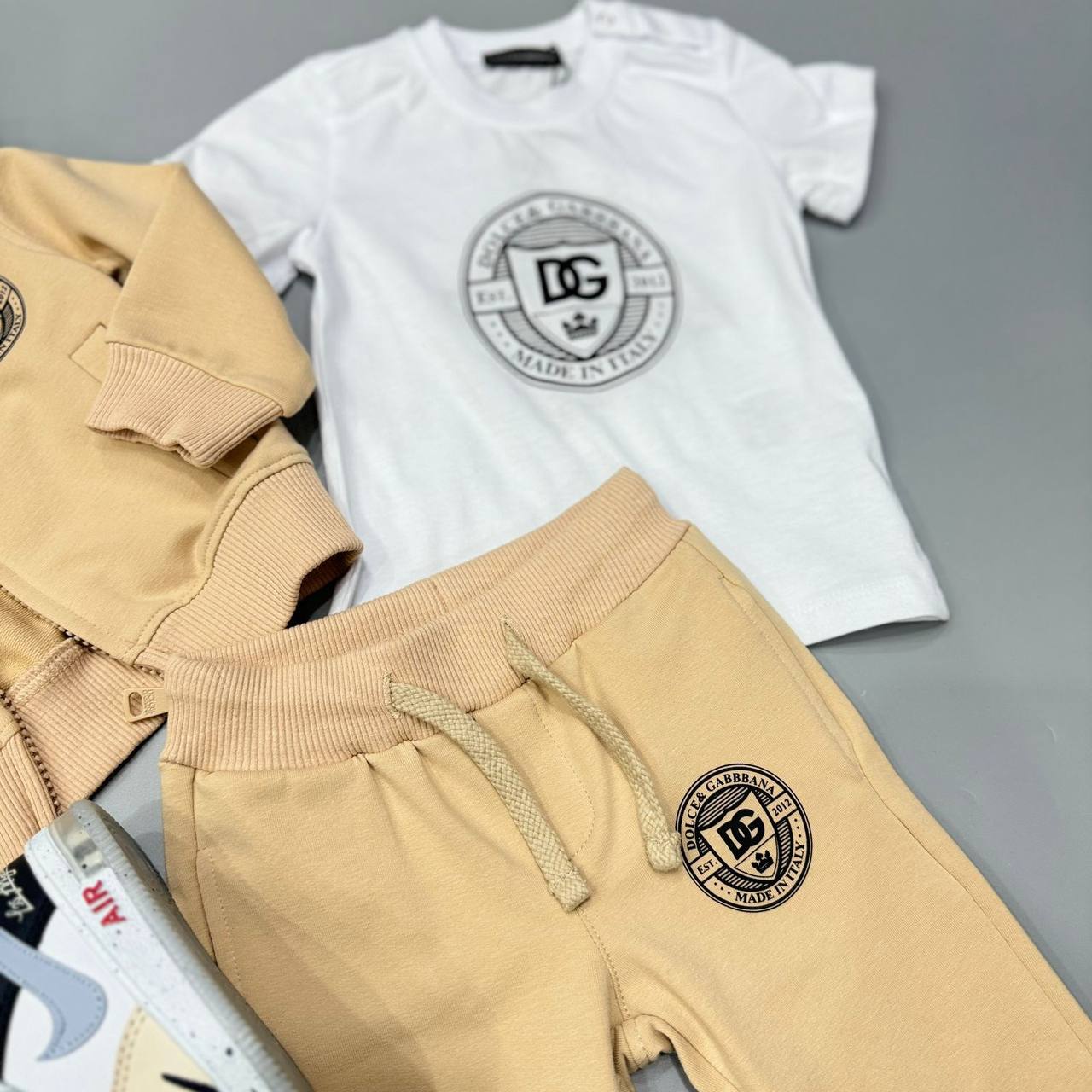 Костюм 3-ка Dolce & Gabbana LUX-114962 – это стильный комплект для детей, состоящий из худи, штанов и футболки. Комплект выполнен в нейтральном бежевом цвете. Он подойдет для повседневной носки, обеспечивая комфорт и удобство.
