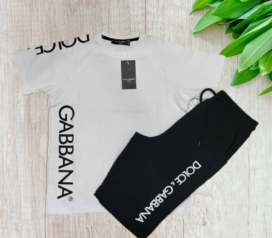 Костюм Dolce & Gabbana LUX-88706 представляет собой стильный комплект, состоящий из футболки и брюк. Футболка выполнена в белом цвете с черными надписями, а брюки - в черном. Этот костюм подойдет для создания современных и комфортных образов.