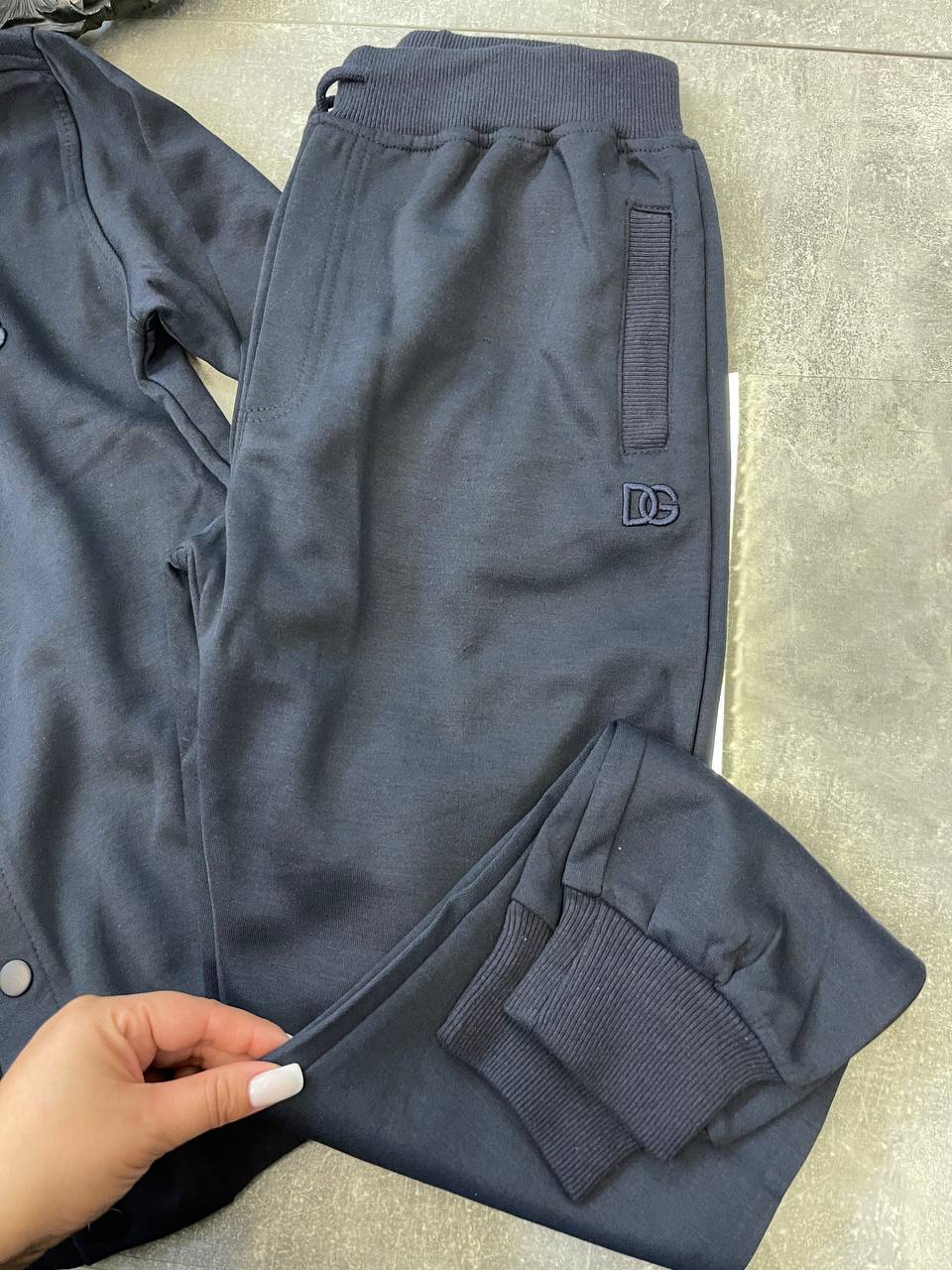 Костюм Dolce & Gabbana LUX-94727 представляет собой стильный спортивный костюм темно-синего цвета. Этот костюм состоит из бомбера на кнопках и спортивных штанов с манжетами. Дизайн костюма подчеркивается вышитым логотипом бренда на груди бомбера и на штанине.